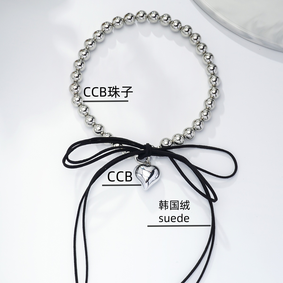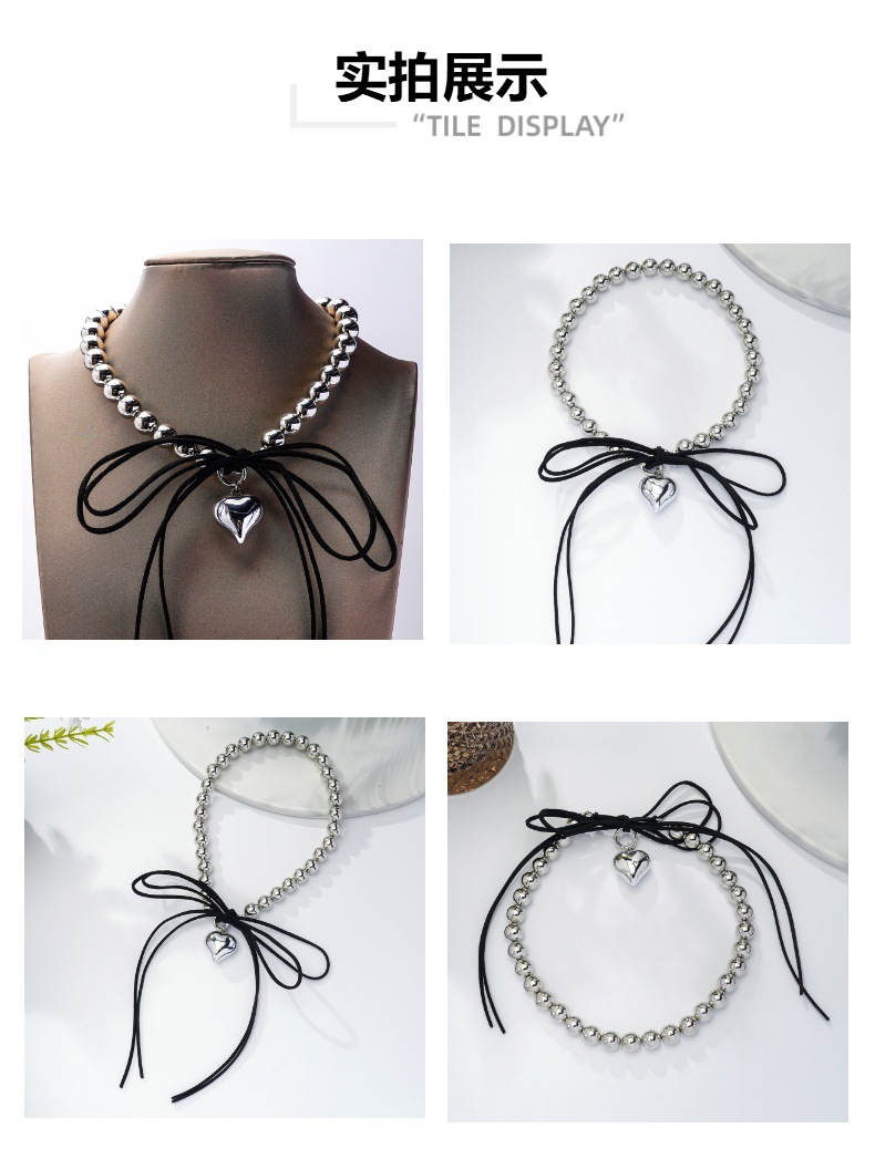1件の欧米の大衆デザインの甘いクールな風の愛のビーズの蝶結びの首のチェーンの手作りのビーズの女性のネックレス