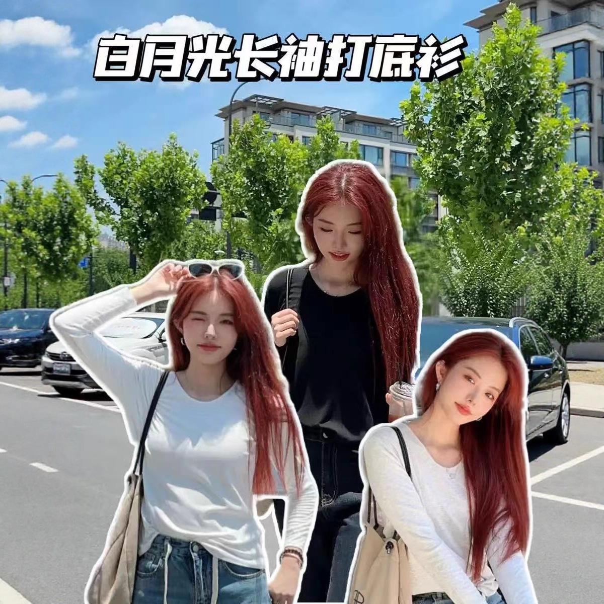 珍黛妮秋の新作、ゆったりとしたVネック、ピュアでセクシーなスタイルの長袖スリムフィット純白トップス、右肩出しで万能なインナー