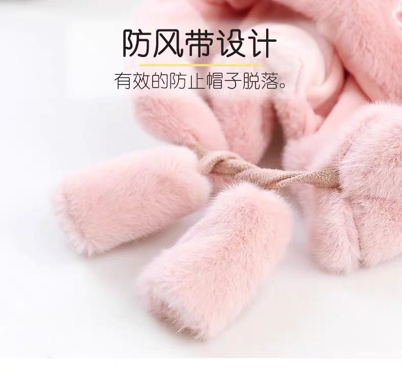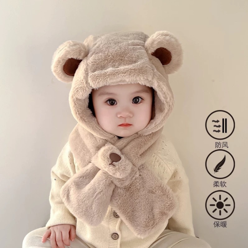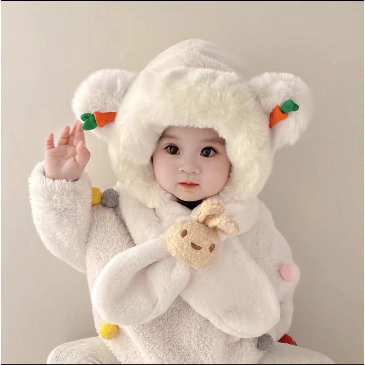 儿童帽子围巾一体秋冬季加绒加厚男女宝宝护耳毛绒帽婴儿保暖围脖