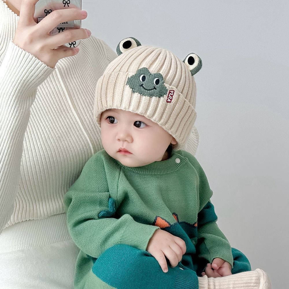 宝宝帽子秋冬季可爱小青蛙护耳帽婴儿防风毛线帽男女童保暖针织帽