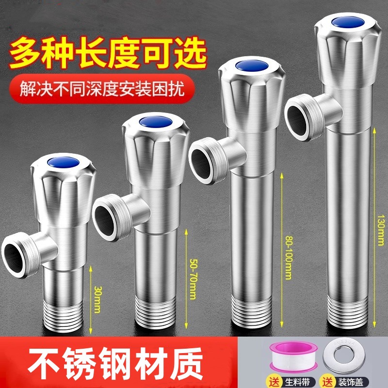 入墙不锈钢加长三角阀家用厨房热水器马桶冷热加厚专用4分开关阀