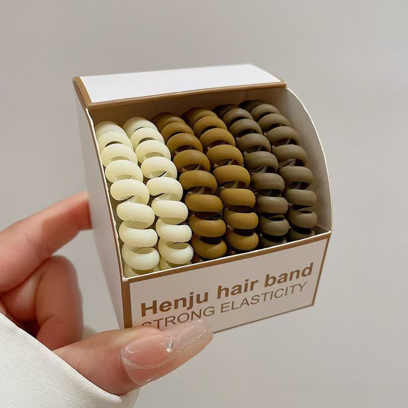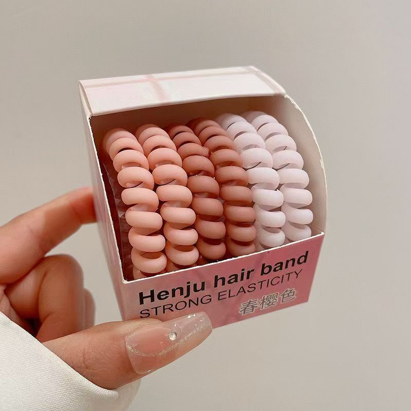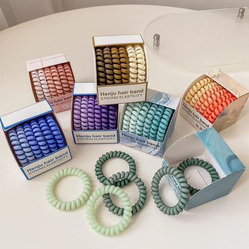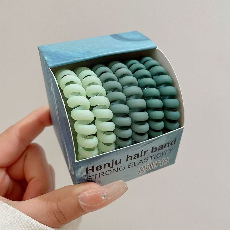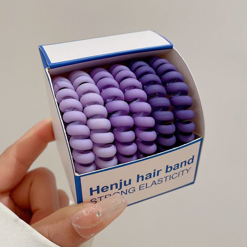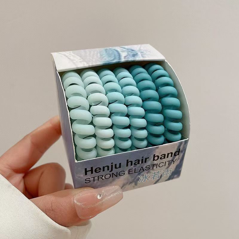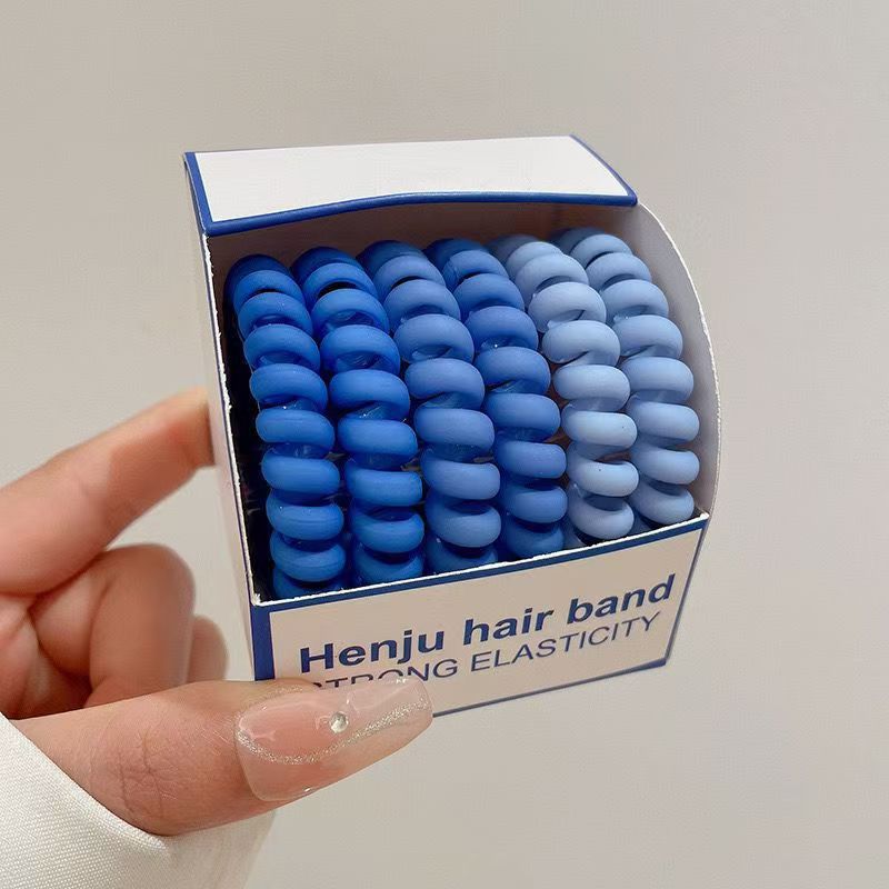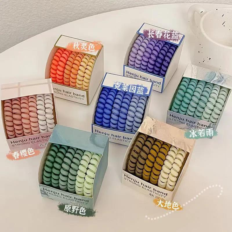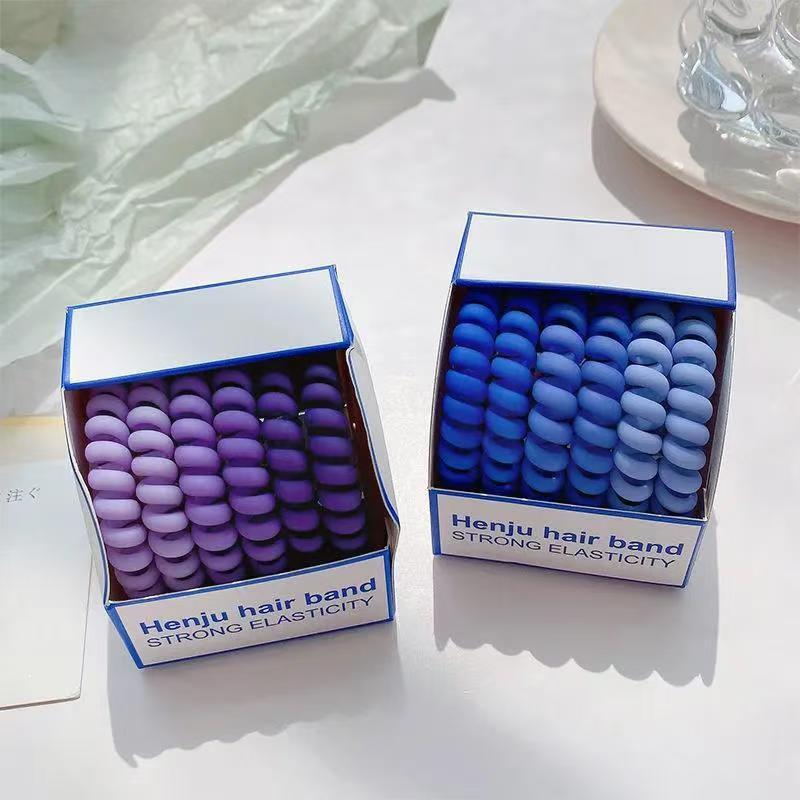 6本のグラデーションの色の箱の電話線の髪の輪がないです。