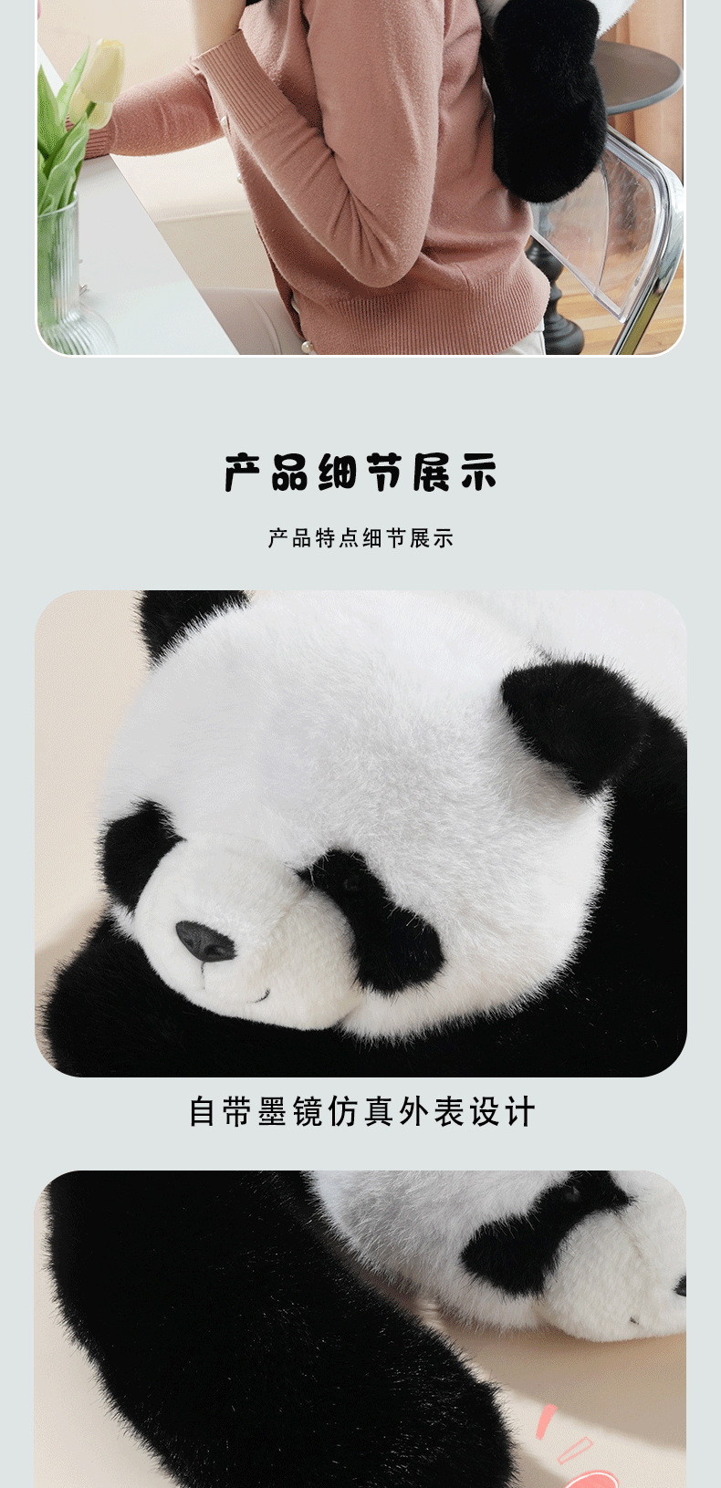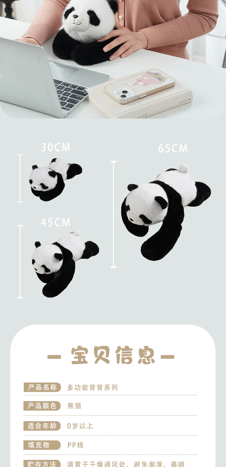 可爱趴款背背毛绒玩具熊猫抱抱熊公仔玩偶礼物娃娃安抚陪睡抱枕
