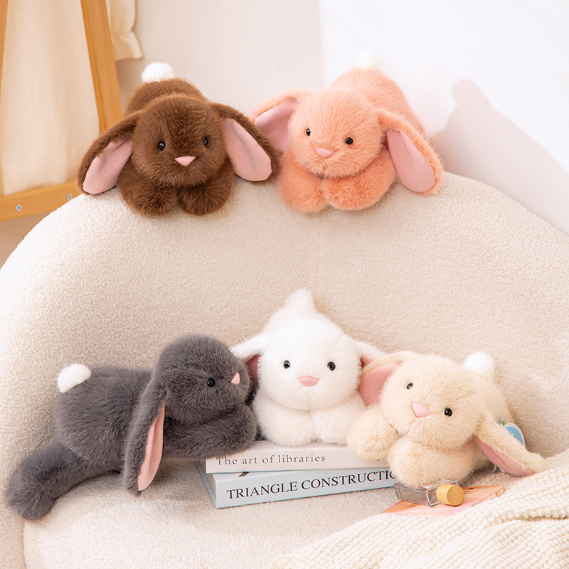 正規版のうつ伏せ姿の艾吉兎のぬいぐるみの子供はかわいい耳を垂れたウサギのぬいぐるみのプレゼントの卸売りに付き添います。