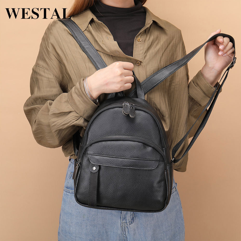 WESTAL 本革バックパック女性の新しいニッチ多用途ファッション大容量第一層牛革レディースカジュアルバックパック