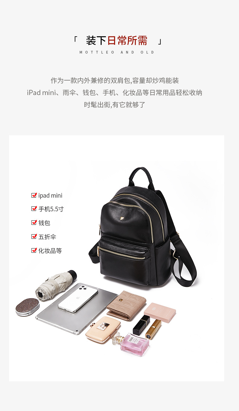 小型真皮双肩包女2025新款时尚百搭女士背包轻便休闲迷你头层牛皮