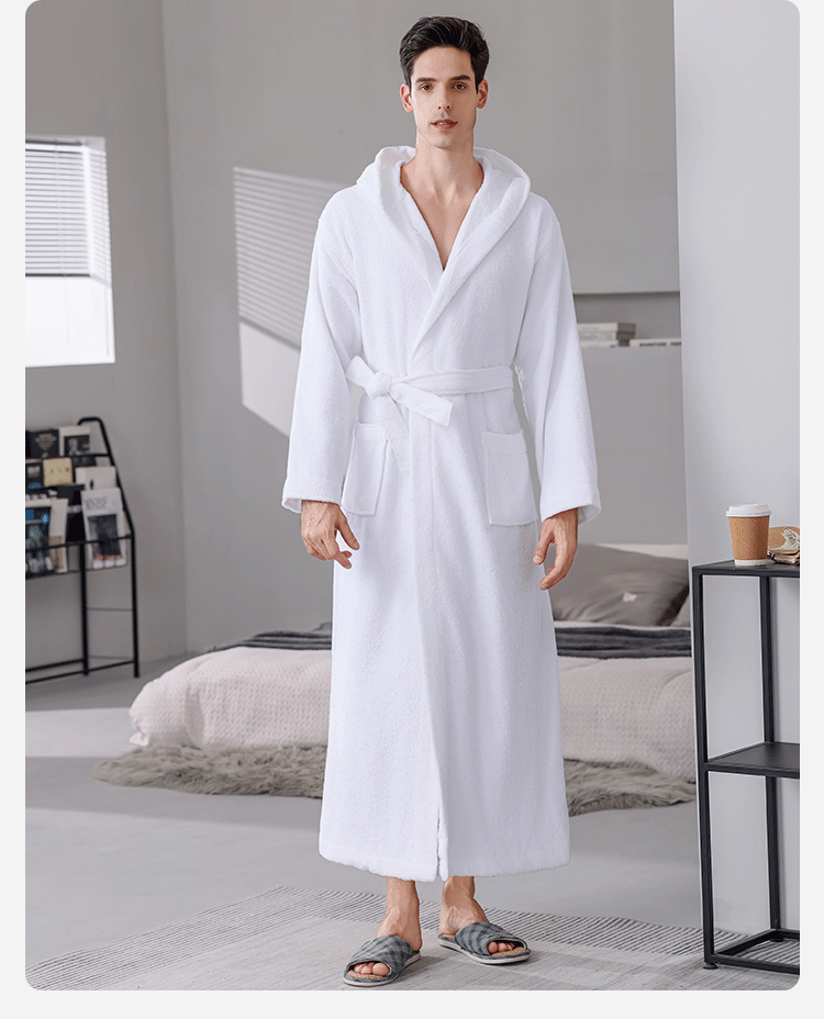 ホテルの純綿のバスローブ冬の純綿と帽子のカップルの寝衣を厚くして長い版の吸水民宿の浴衣の卸売りを増加します。