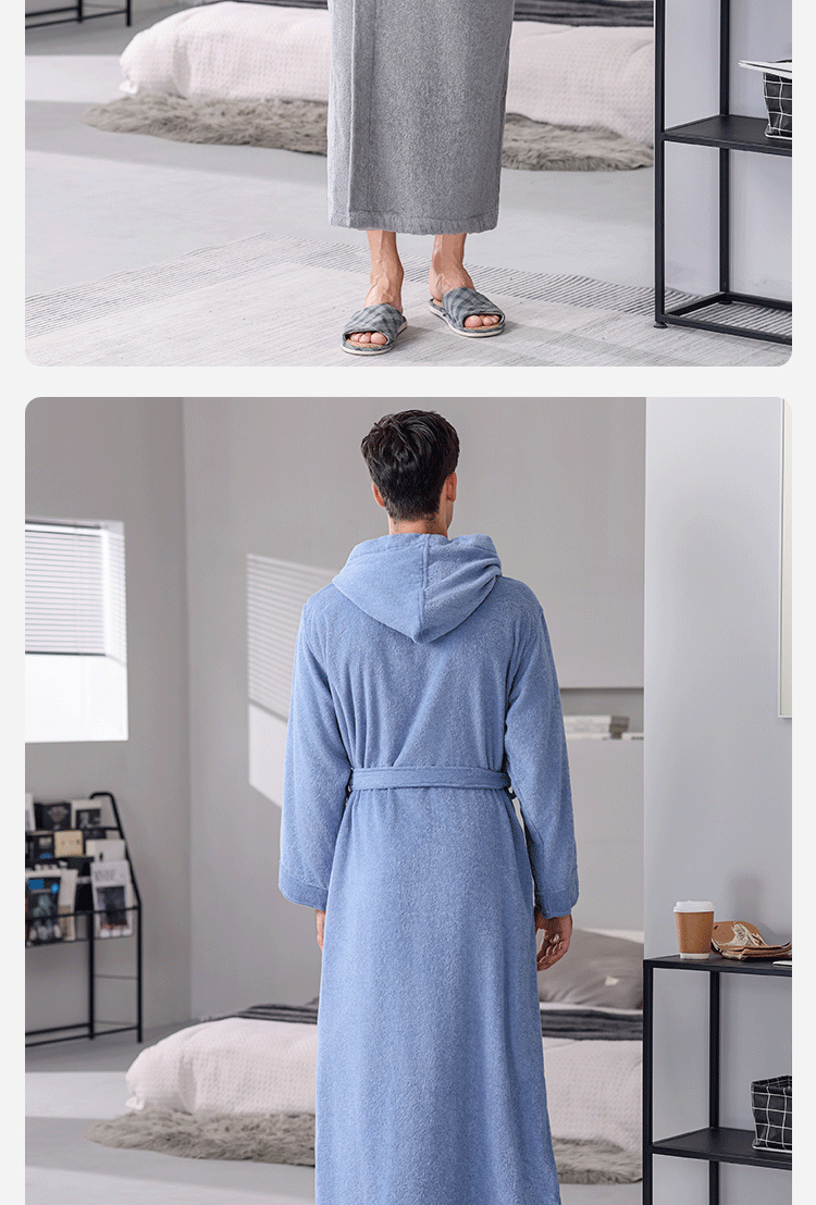 純綿ホテルのバスローブ秋冬にタオルを厚くして寝ている服を長くして帽子をかぶっている子供の親子男性女性の吸水浴衣