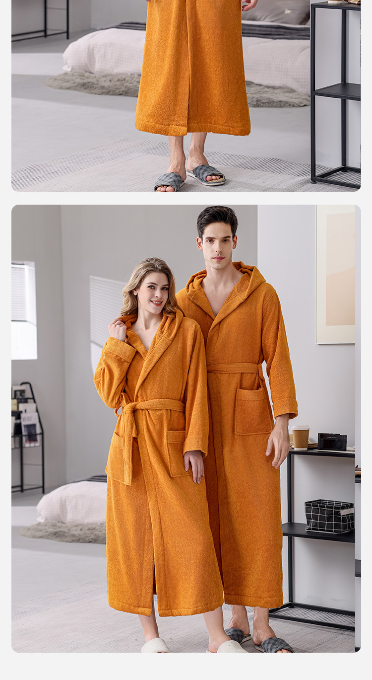 ホテルの純綿バスローブカップルの寝衣は冬に帽子付きの男女タオルのパジャマを厚くします。