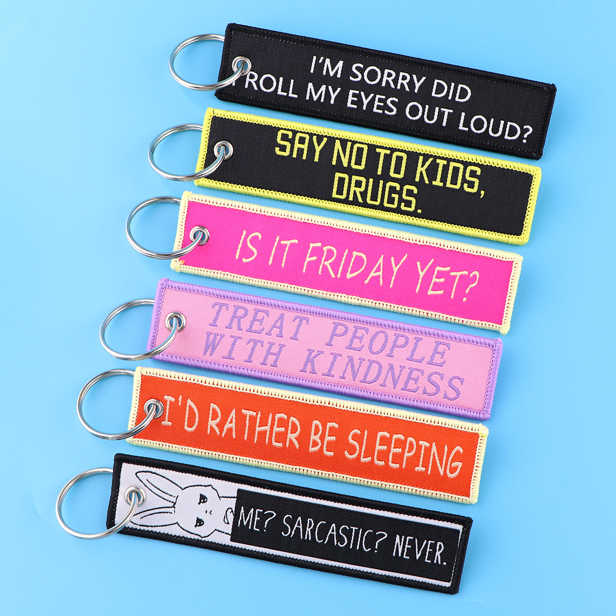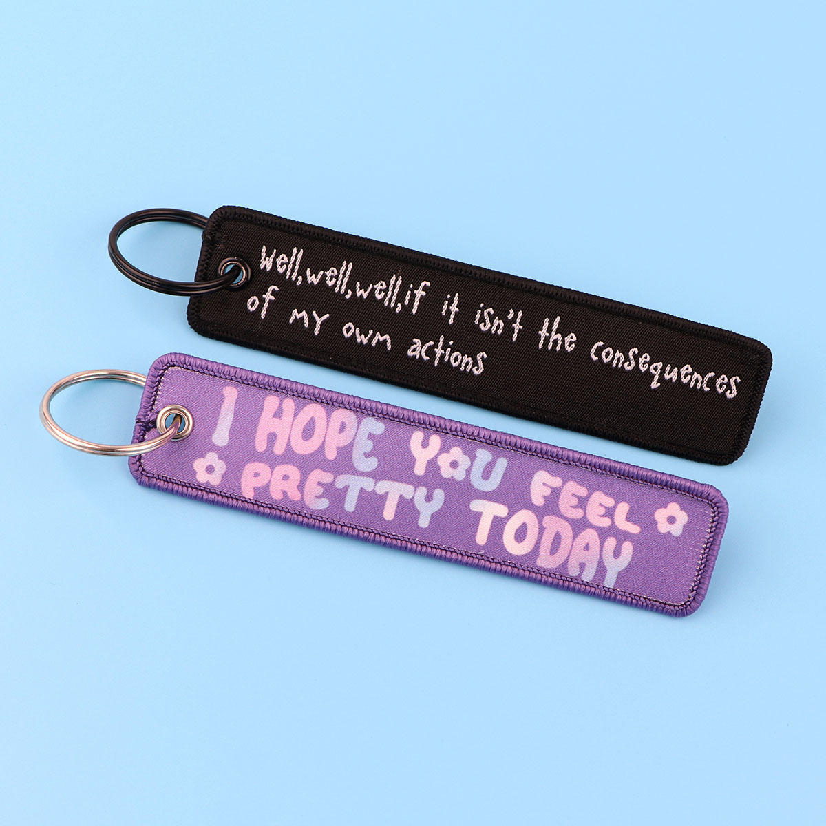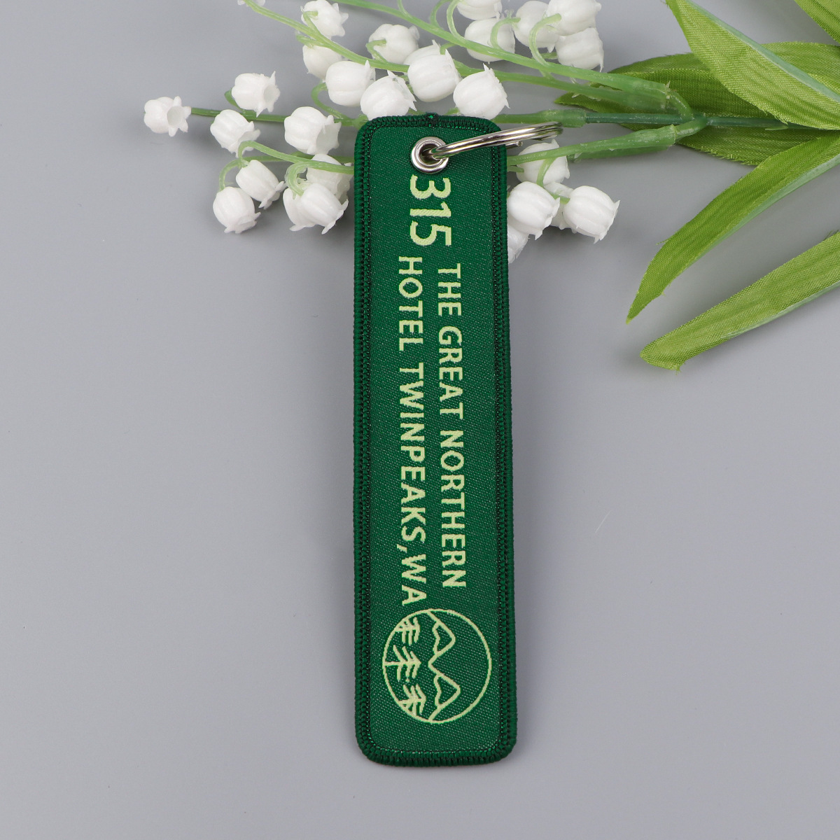 国境を越えた航空会社織りラベルキーホルダーストラップ学生オフィス ID ペンダント織りキーホルダー刺繍ペンダント
