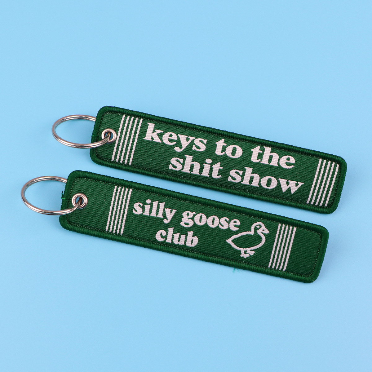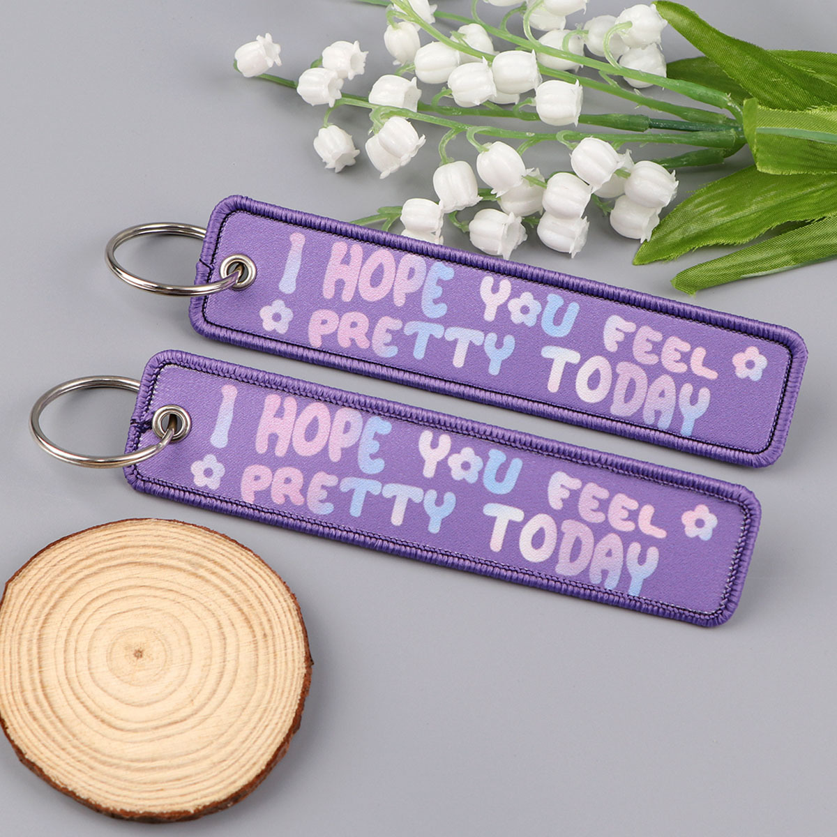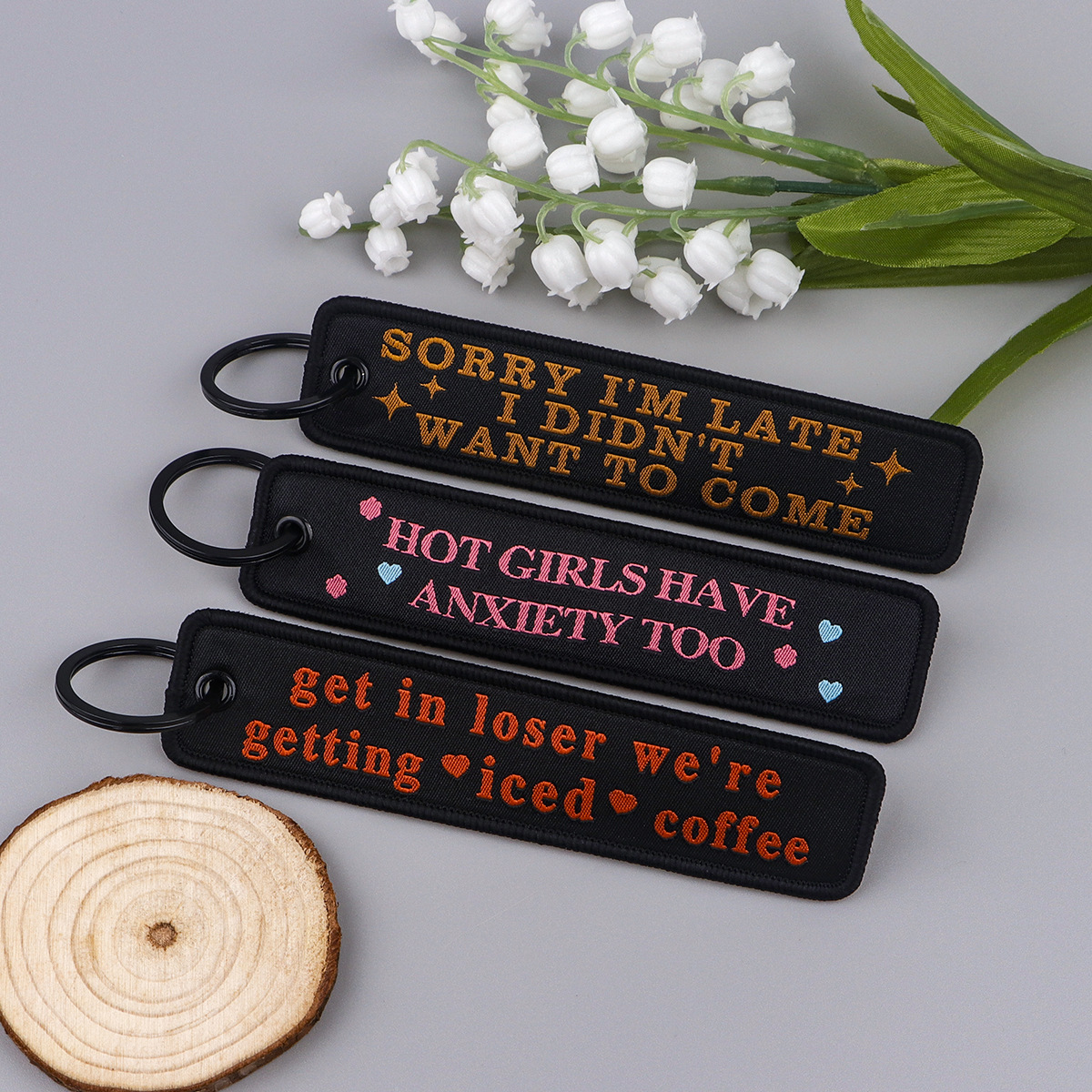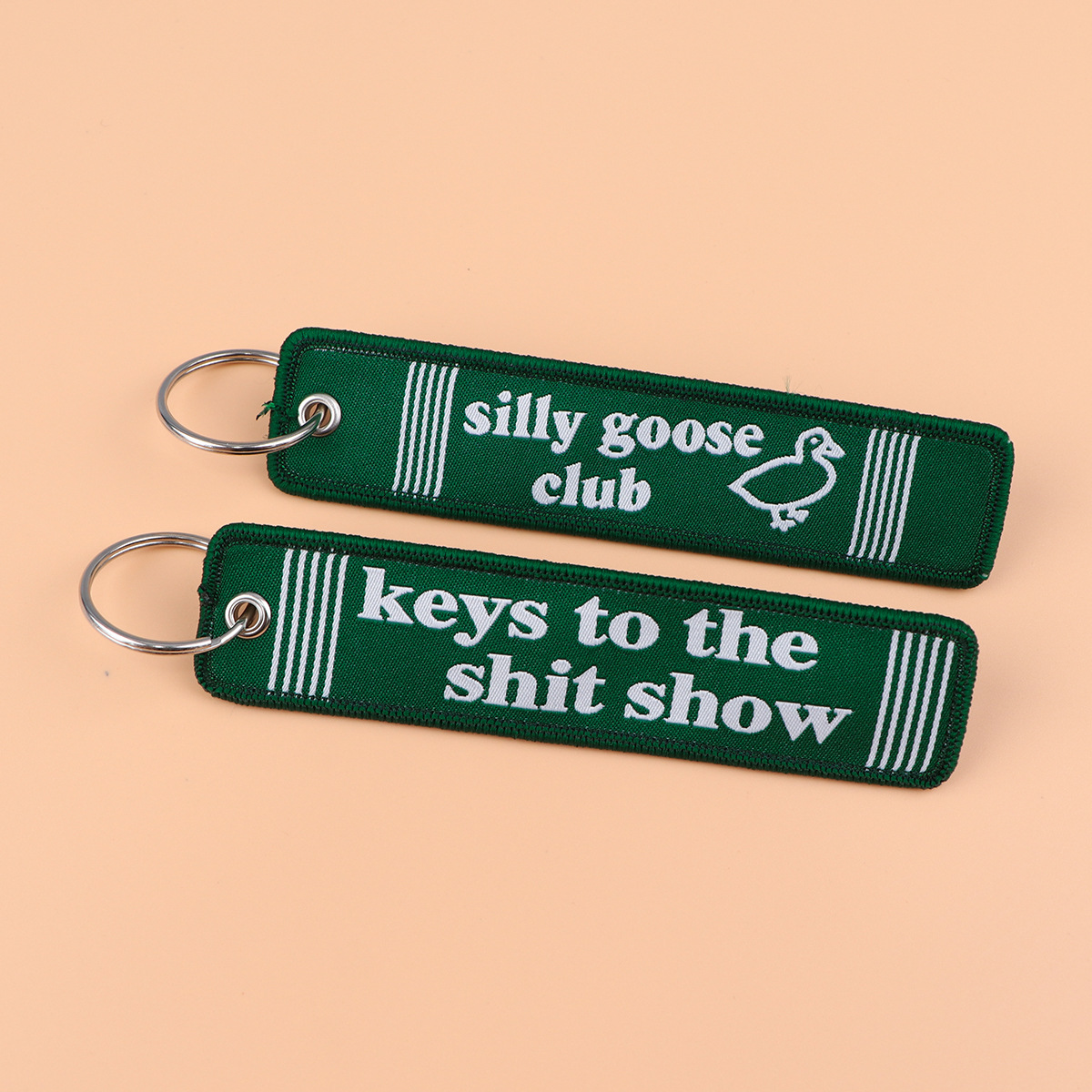 国境を越えた航空会社織りラベルキーホルダーストラップ学生オフィス ID ペンダント織りキーホルダー刺繍ペンダント