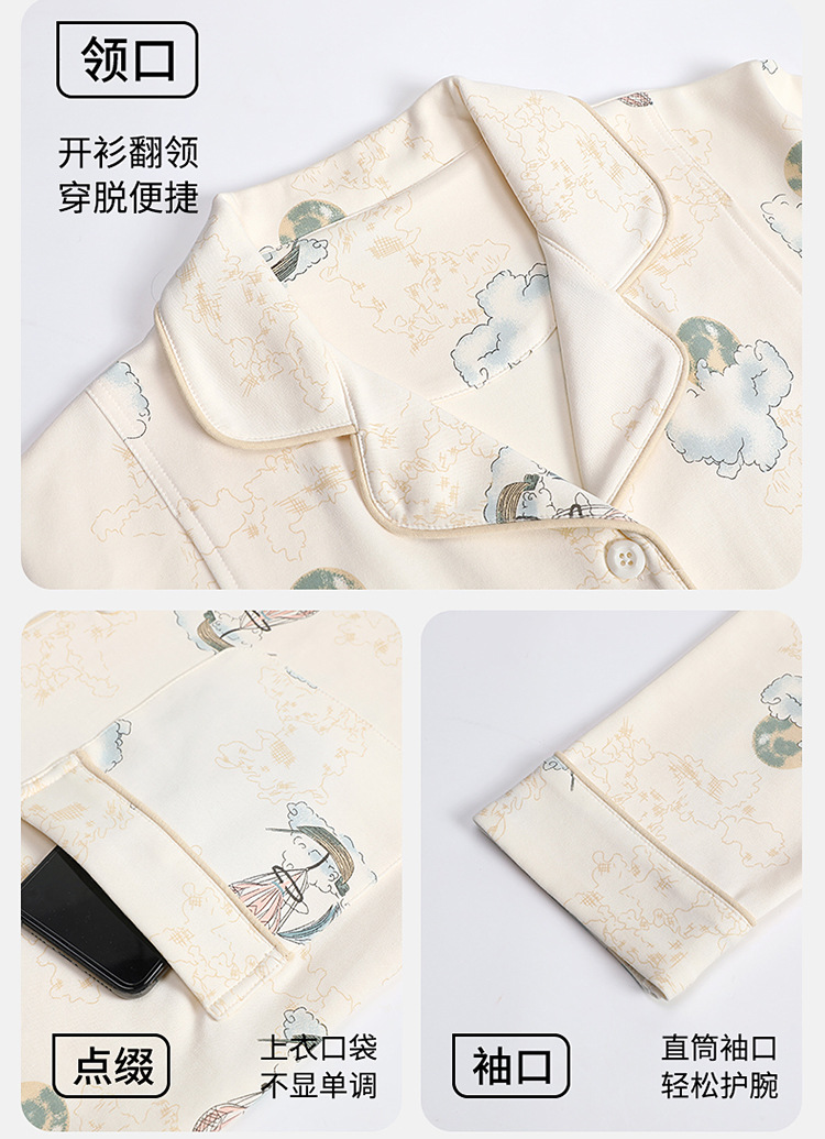 A类春秋冬新款A类纯棉翻领带侧开口月子服可外穿睡衣家居服