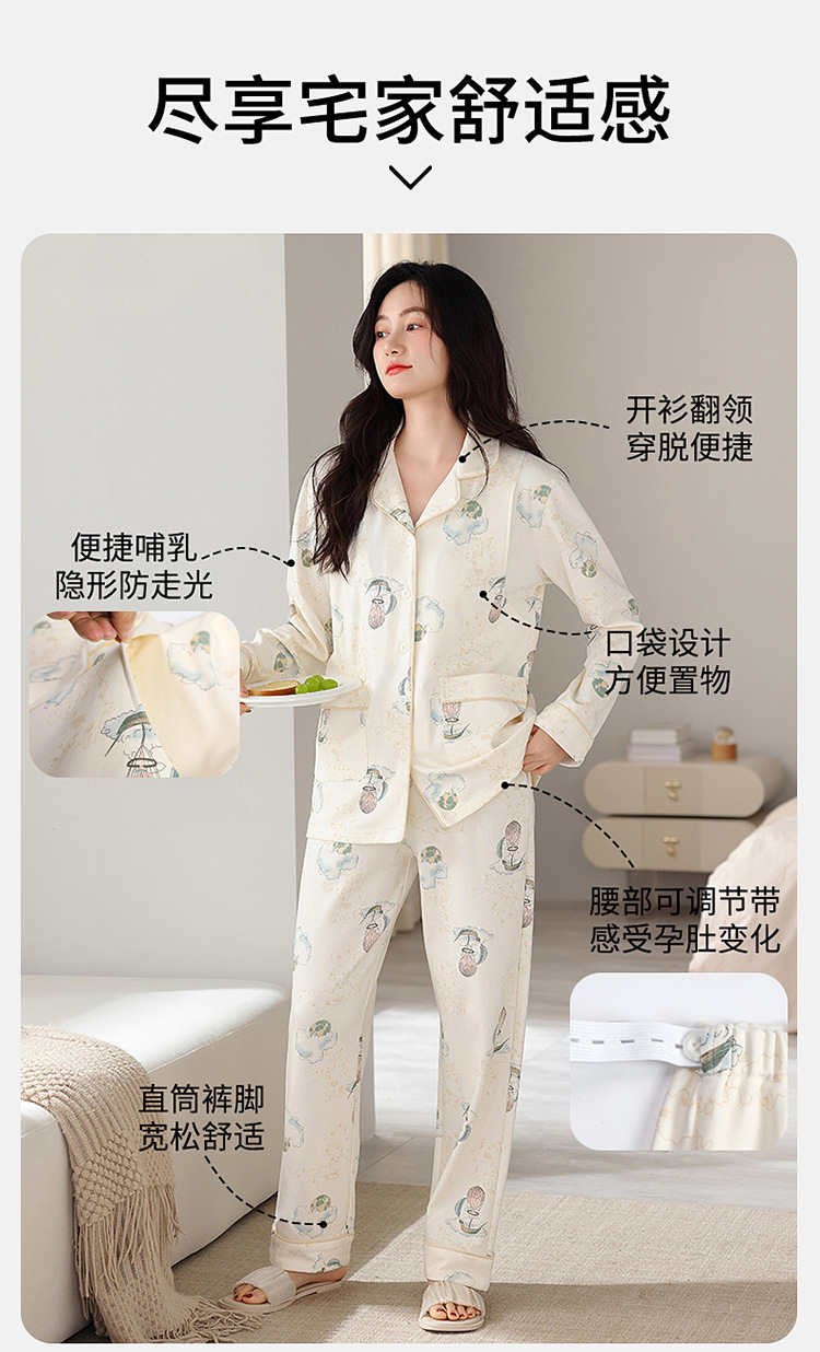 春秋レディース純綿パジャマ月子服ホームウェアカーディガン長袖長ズボン妊婦授乳授乳セット