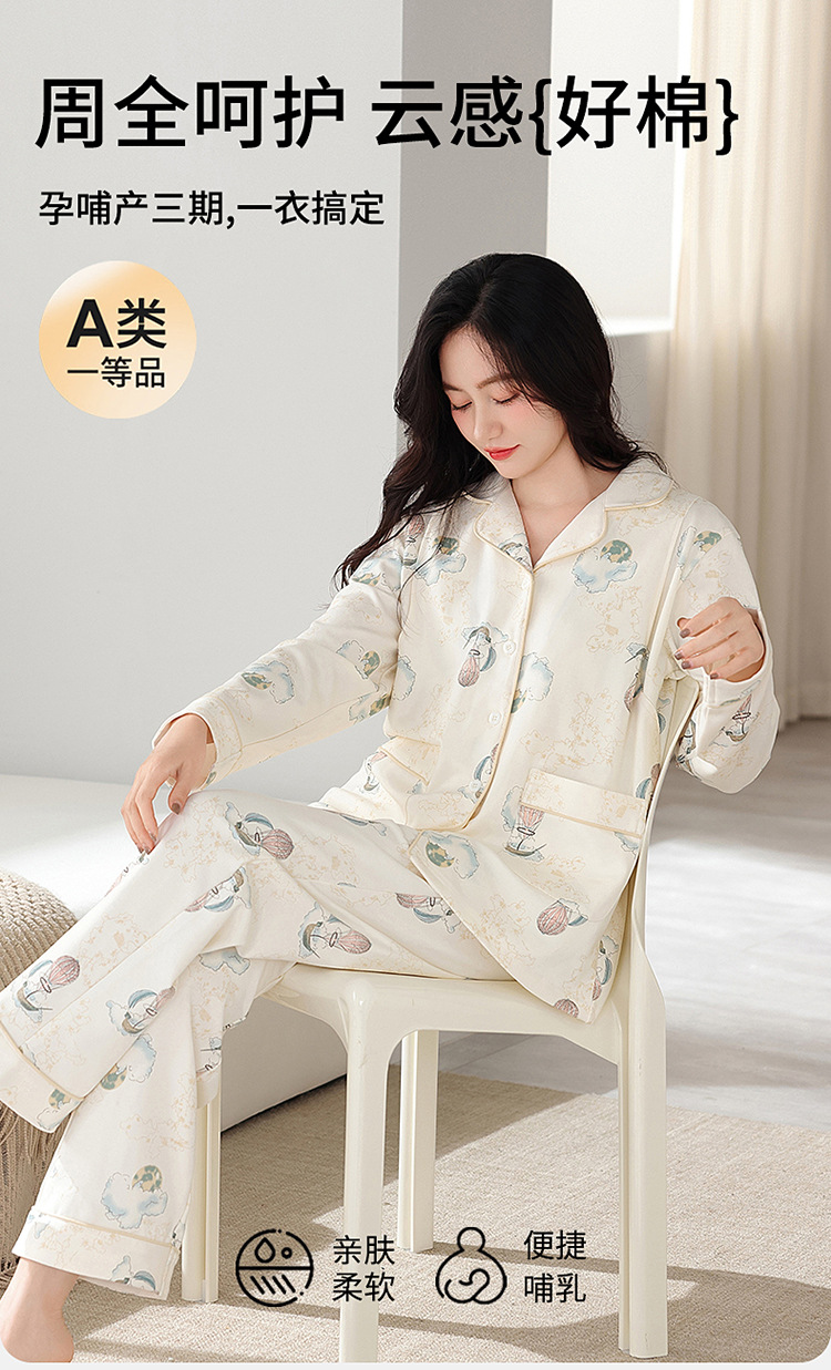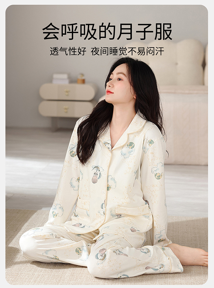月子服春秋純綿産後授乳妊婦パジャマ両面純綿産婦授乳秋冬金月子服