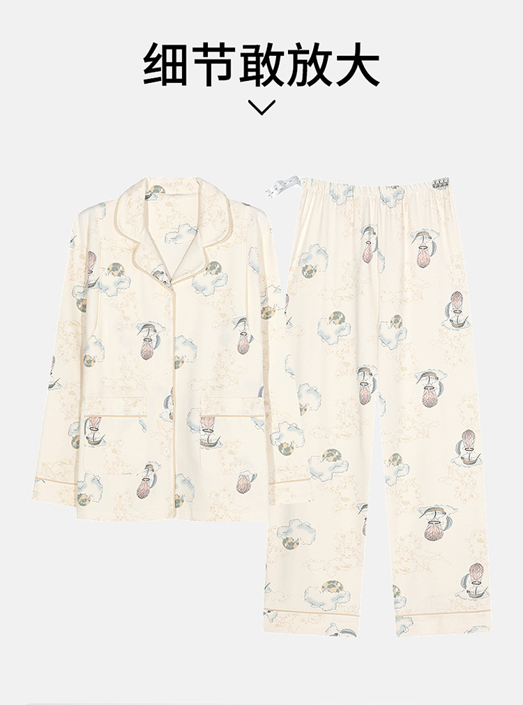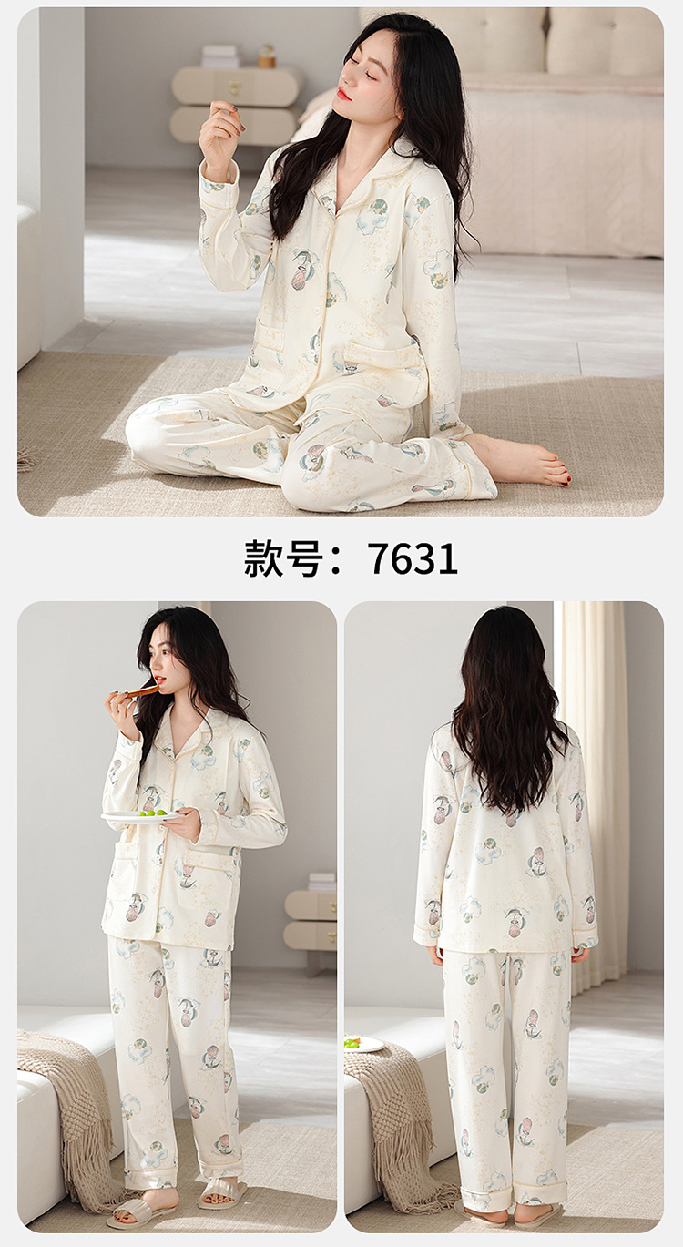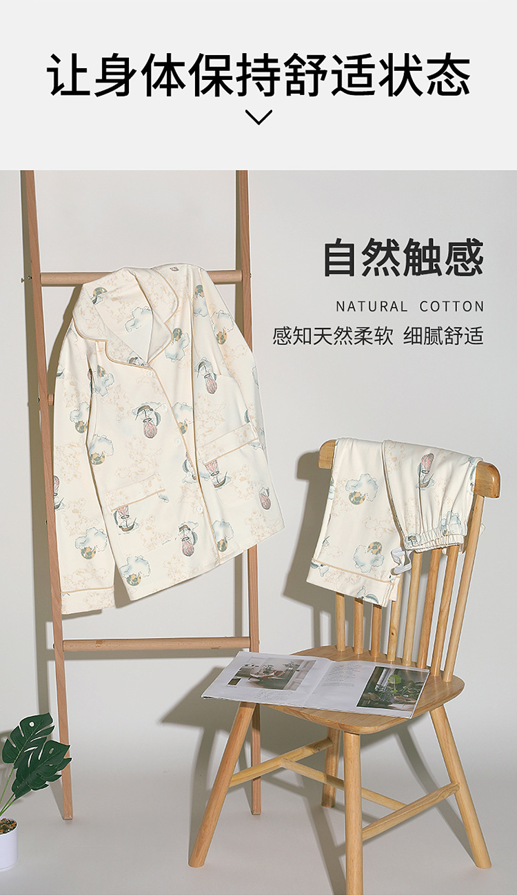 新作秋冬パジャマレディース純綿花柄カーディガン襟開き長袖長ズボンルームウェア純綿シンプルセット