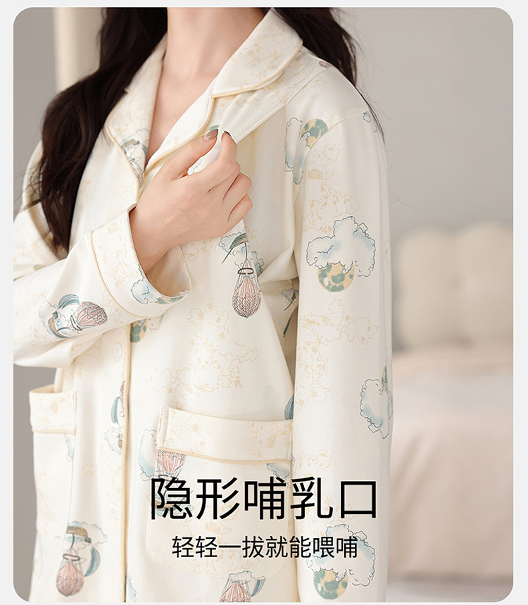 純綿月子服ステルス側開口妊婦パジャマ産後授乳授乳服秋冬タイプ女性ルームウェア
