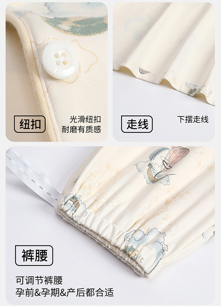 春夏新作パジャマ月子服7a抗菌プルオーバーさわやか綿出産前産後授乳服2点セットホームウェア