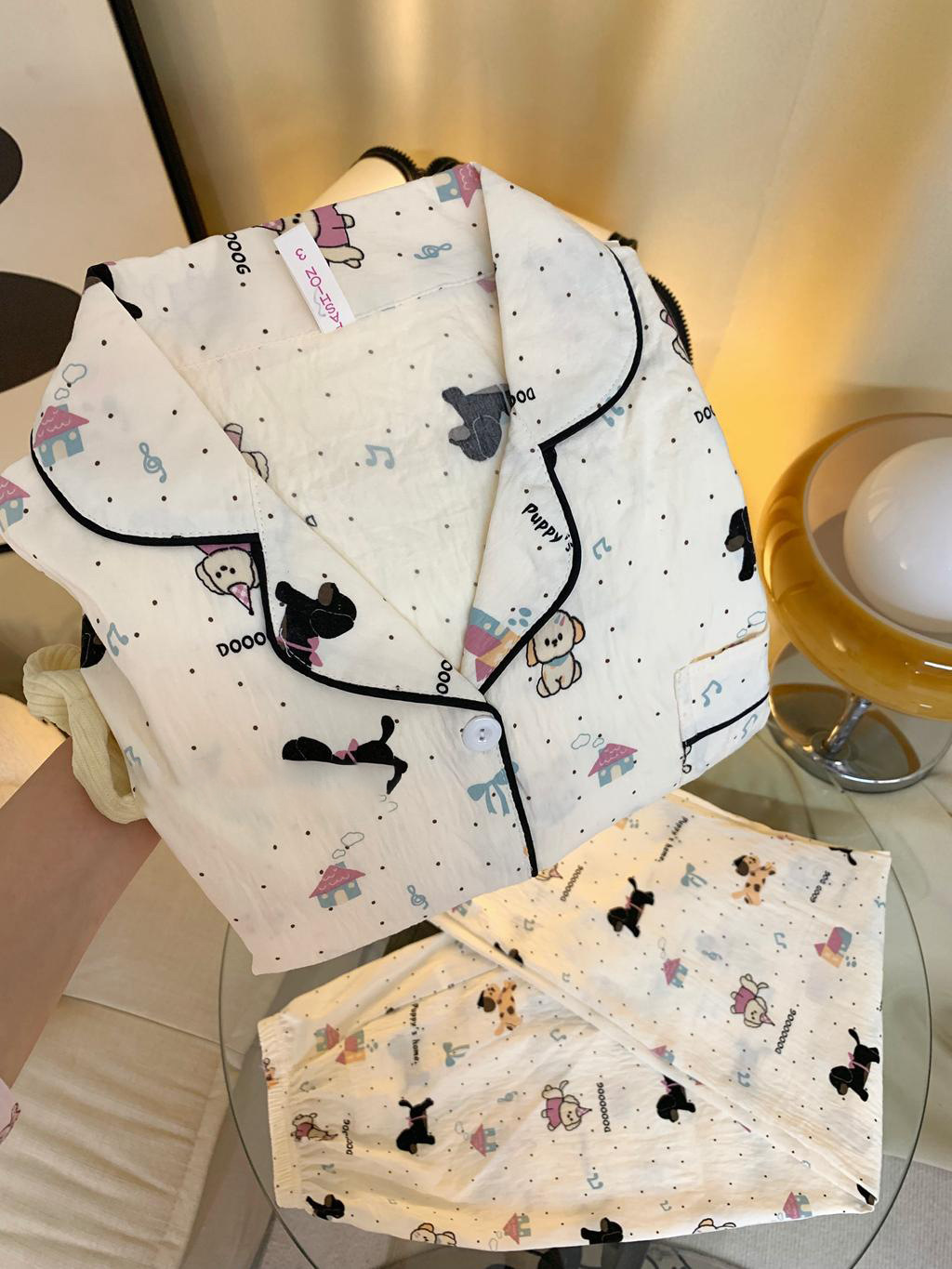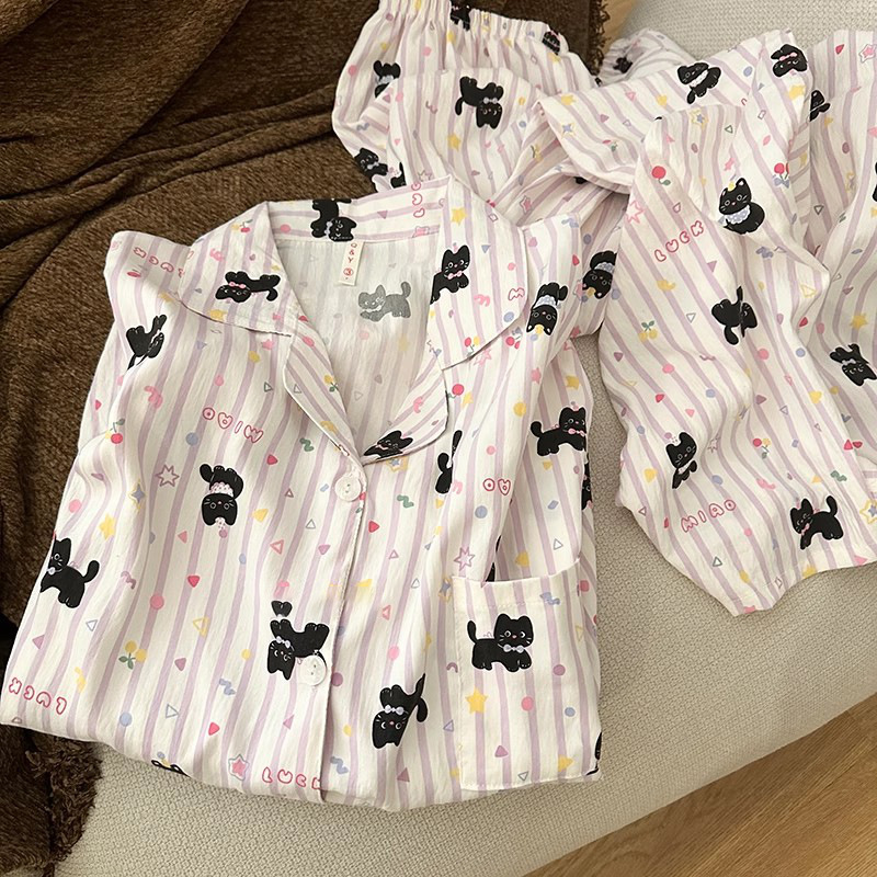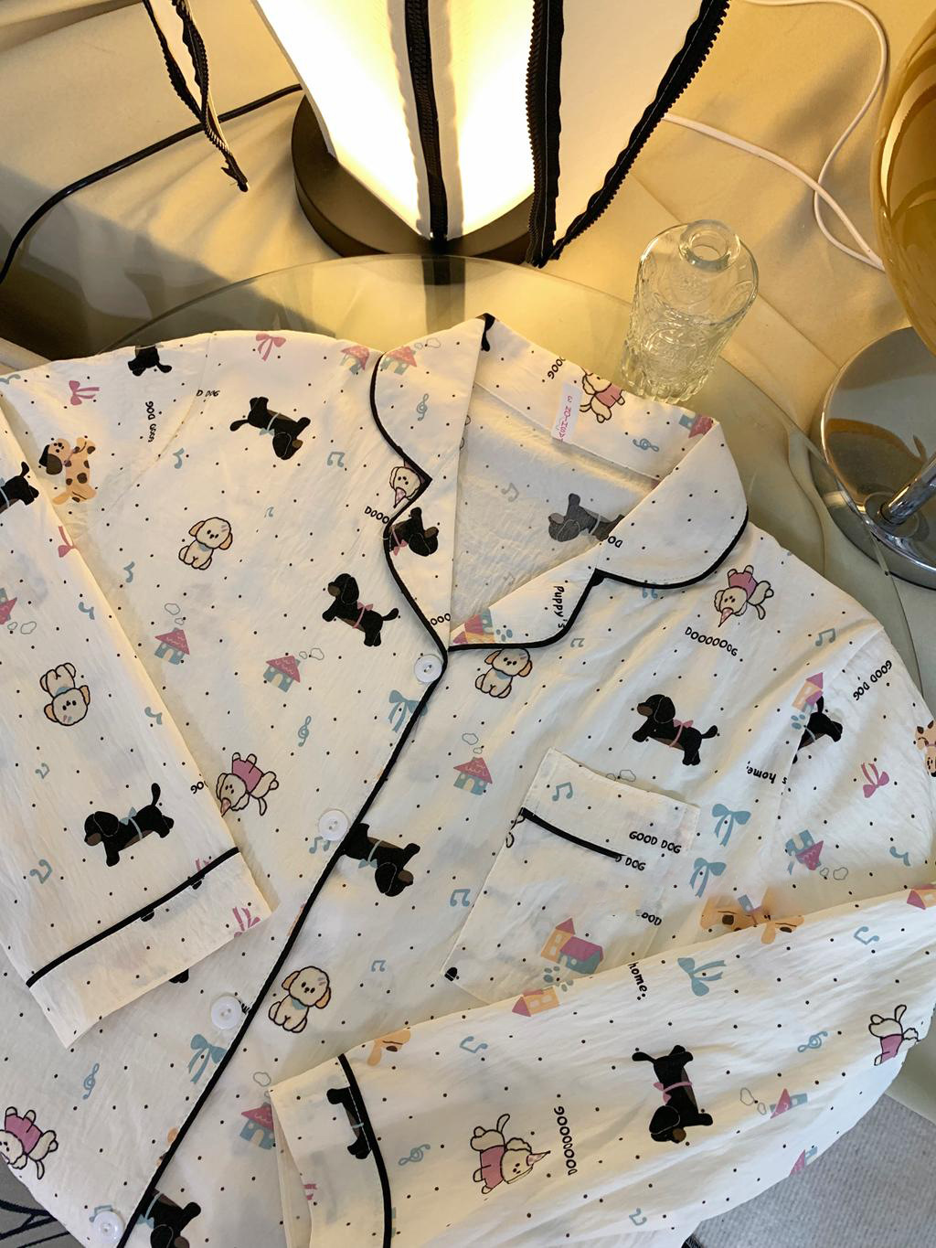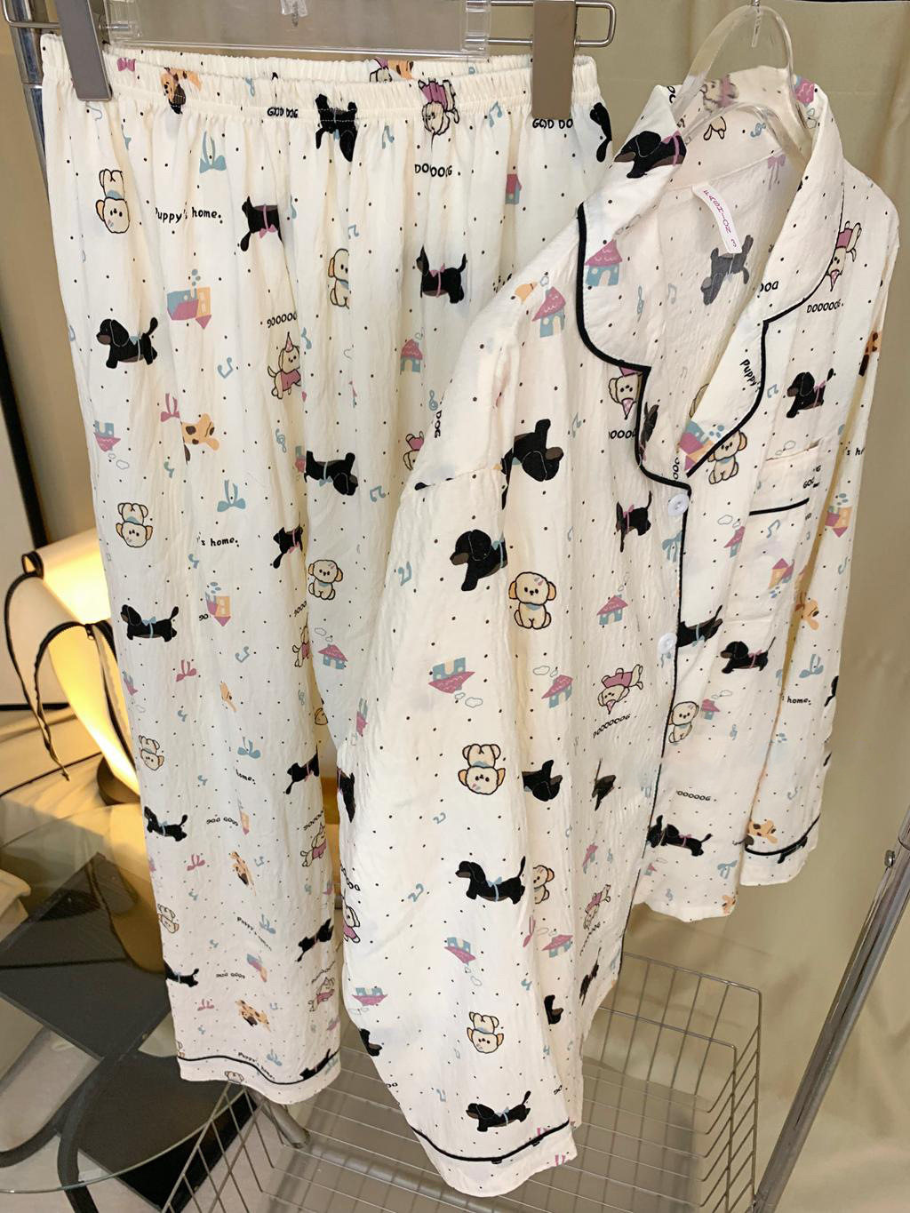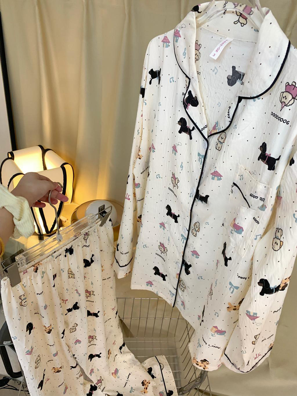 Yunduo 綿ガーゼパジャマ女性の春と秋の長袖スーツ漫画クロスボーダーホーム服秋大きいサイズかわいいアウターウェア