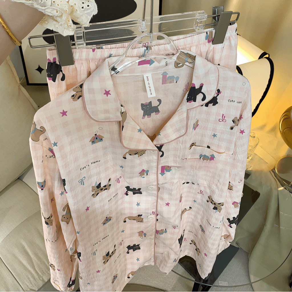 云朵棉纱布睡衣女春秋款卡通可爱长袖套装网红风家居服秋季可外穿