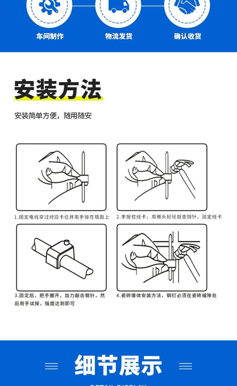 鋼釘線カード電線固定線クリップケーブル釘セメント壁釘電線釘円形管カードコードバックル