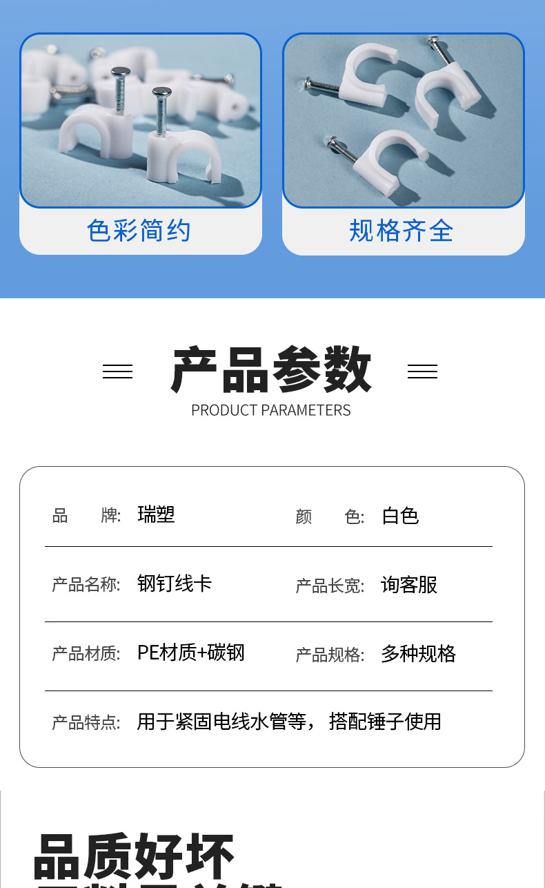 鋼釘線カード4-50mm角型円形プラスチックナイロン線バックル電話線線固定釘圧線クリップ