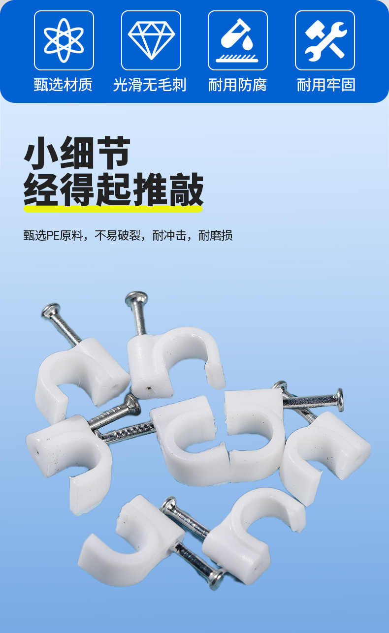 钢钉线卡 圆型线卡 高品质固定管卡 线扣 线夹6 8 10 12mm