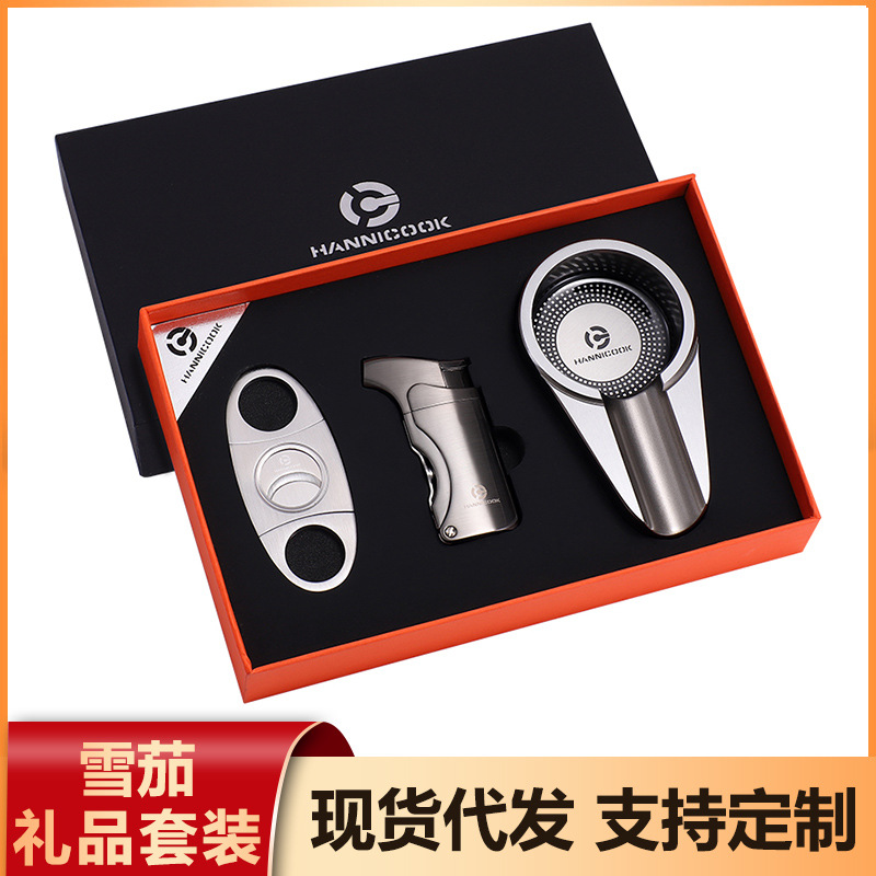 Hannicook鋭利なシガーカット防風ライター陶磁器金属灰皿三点シガーセット軽豪華