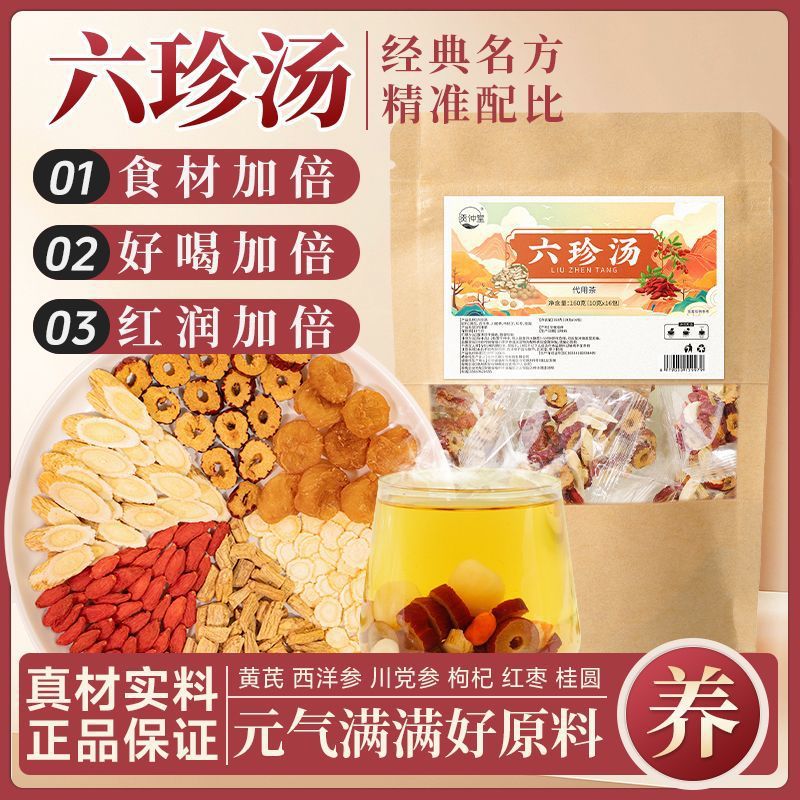 气血调理专用六珍汤茶 黄芪桂圆党参枸杞红枣茶