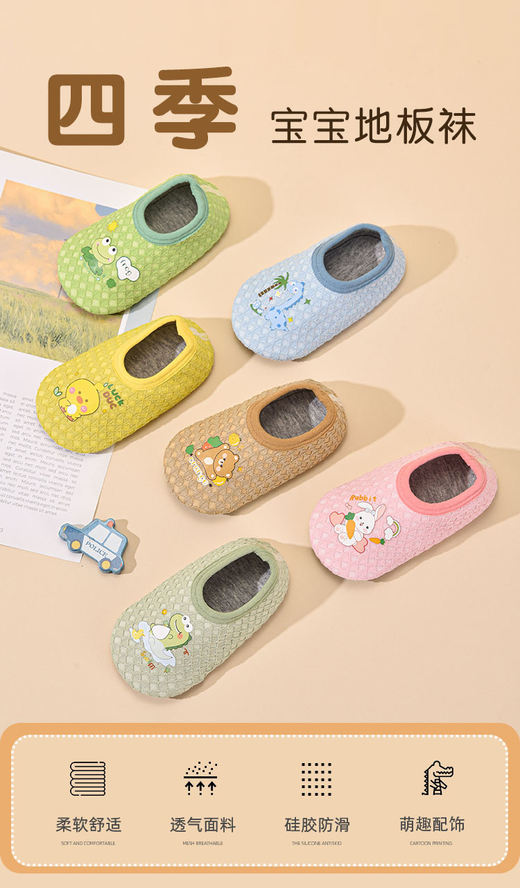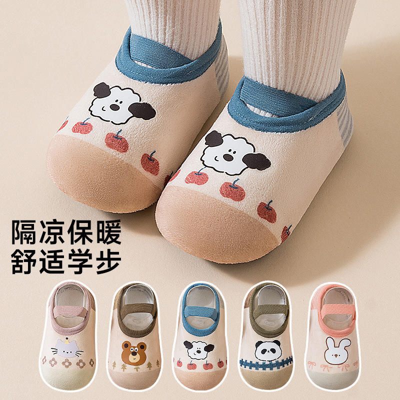 春と秋の薄いタイプの赤ちゃんの床の靴下の子供の滑り止めの柔らかい底の赤ちゃんの学校の靴下の室内の家は靴の靴下のカバーと一緒に落ちません。