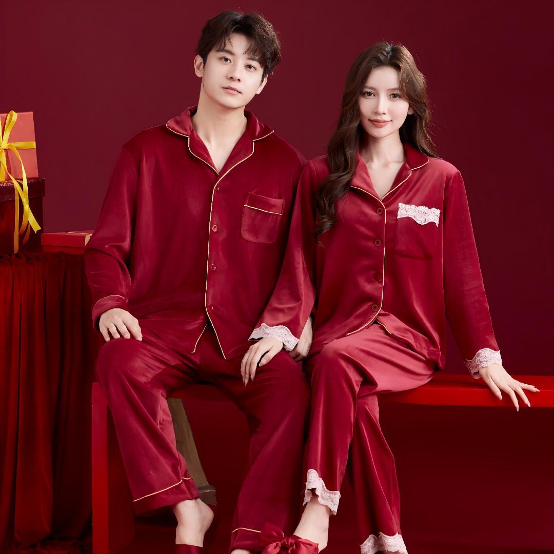 睡衣结婚新婚情侣套装高档婚用红色海岛绒秋冬季新郎新娘婚礼男女