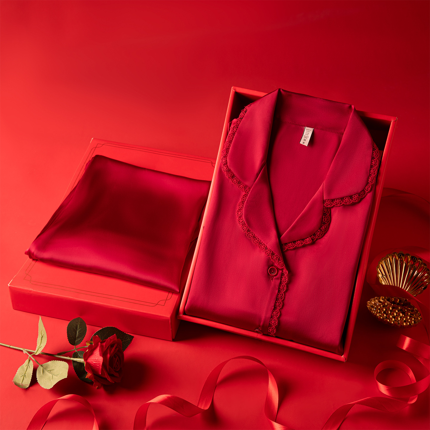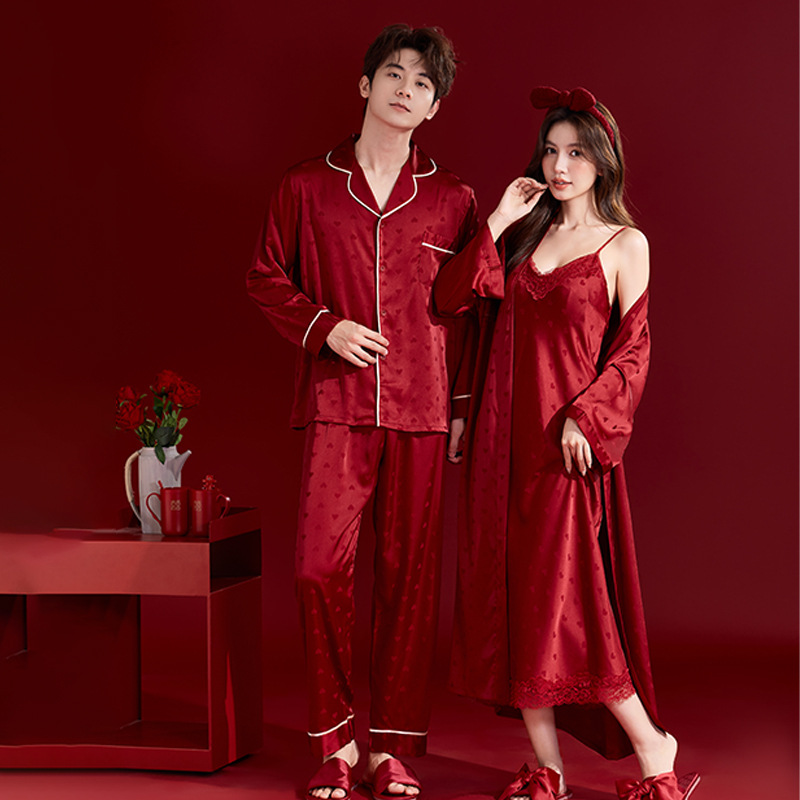 パジャマ結婚新婚カップル高級結婚用春秋氷シルク赤シルク男女結婚式結婚セット