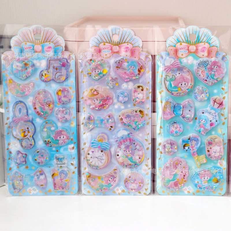 新款创意泡泡贴纸儿童可爱水贴可定美人鱼灌水摇动贴画diy礼物