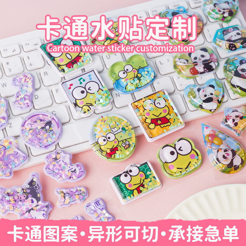 3D立体摇摇乐水贴纸卡通动漫双子星创意可爱大眼蛙流沙水贴纸定制