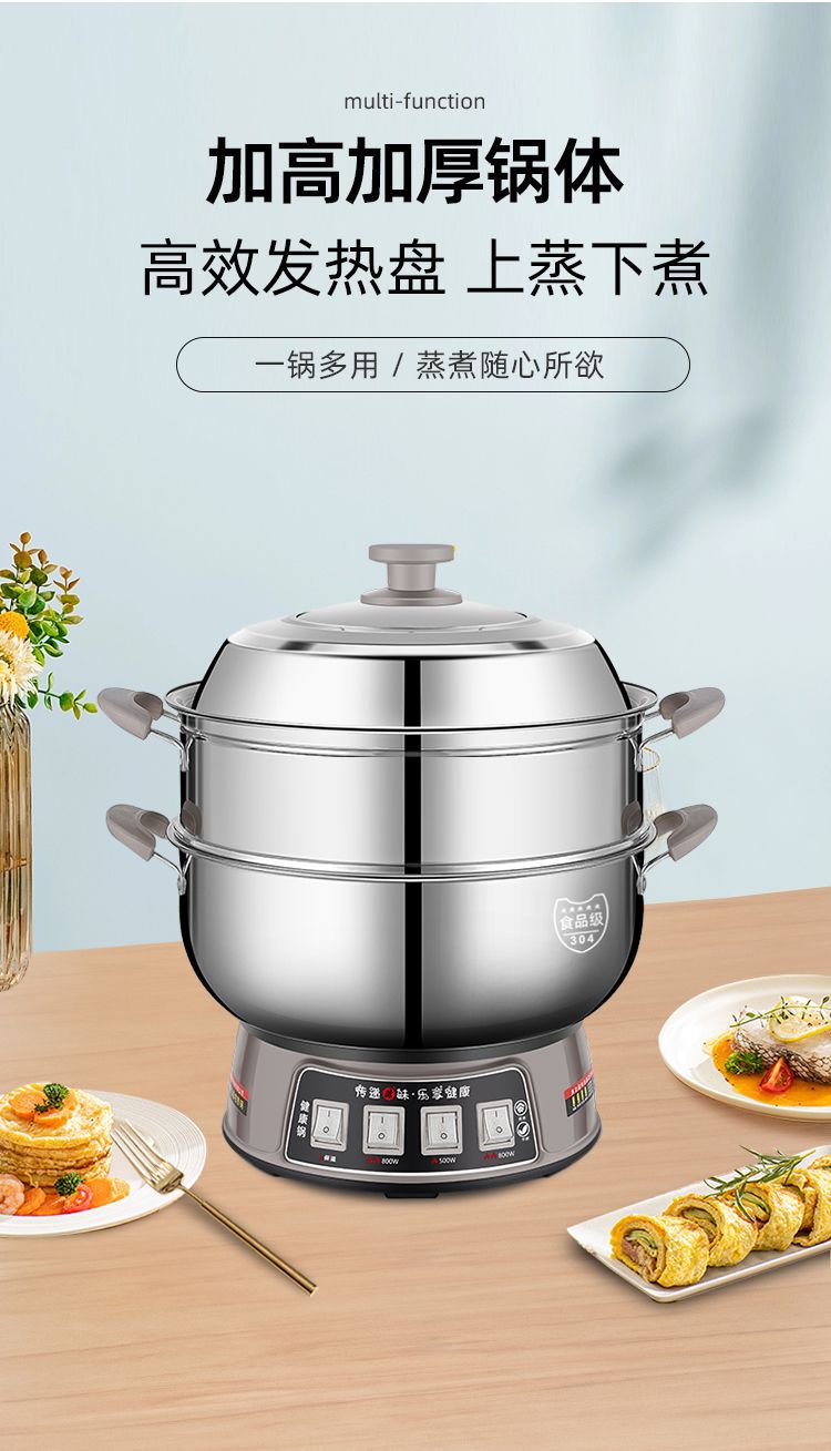 万利達電気鍋304電気炒め鍋電気鍋電気蒸し器蒸し調理一体型寮用電気鍋304ステンレス鋼