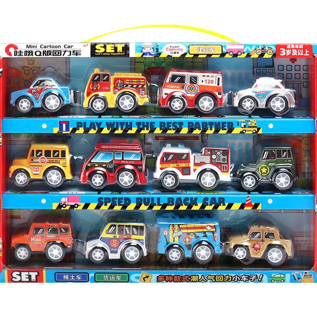 ミニ合金製プルバックカー 男の子向けエンジニアリングカー Q版漫画風ミニカー 子供用おもちゃセット 車模型