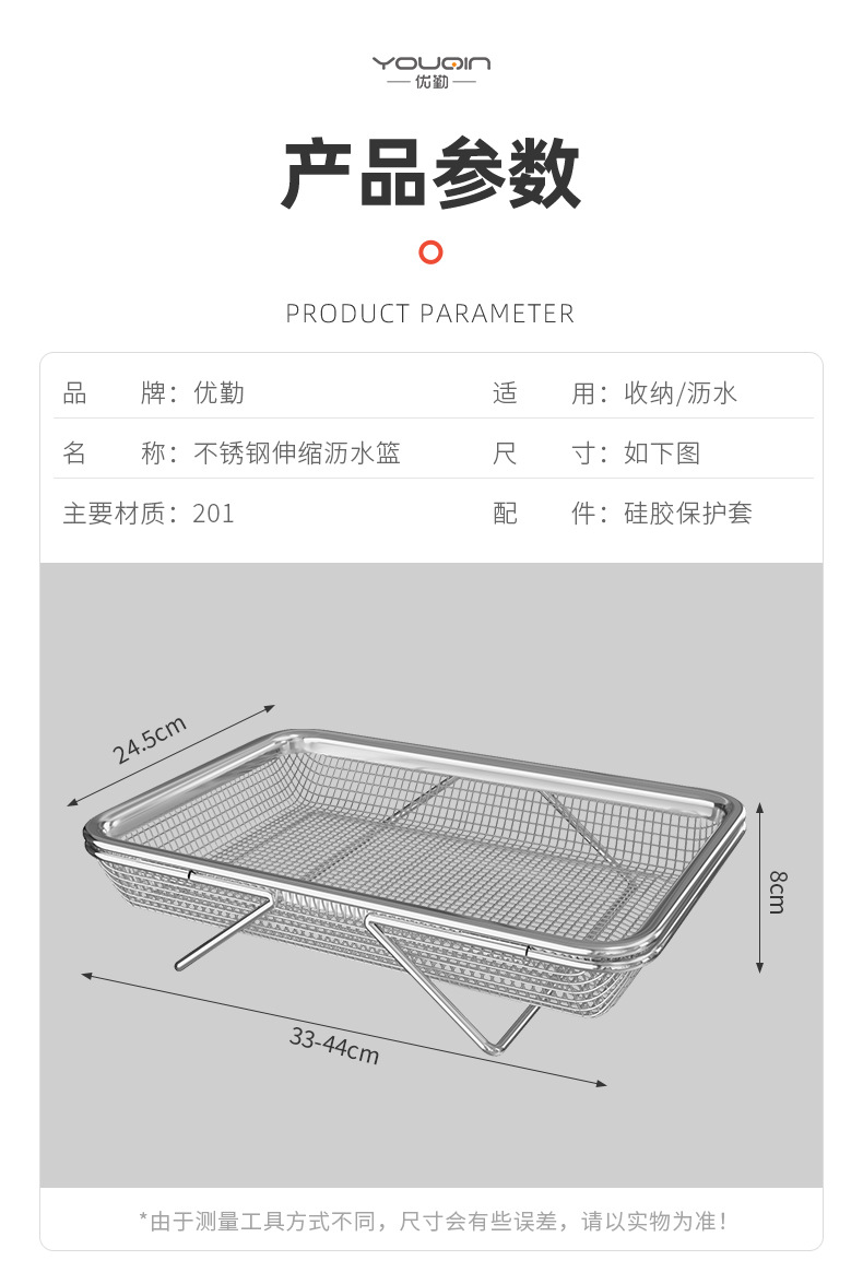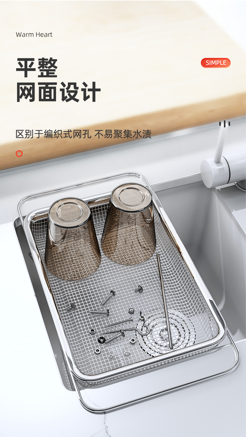 304不锈钢厨房可伸缩沥水篮洗菜盆家用水槽水池沥水架