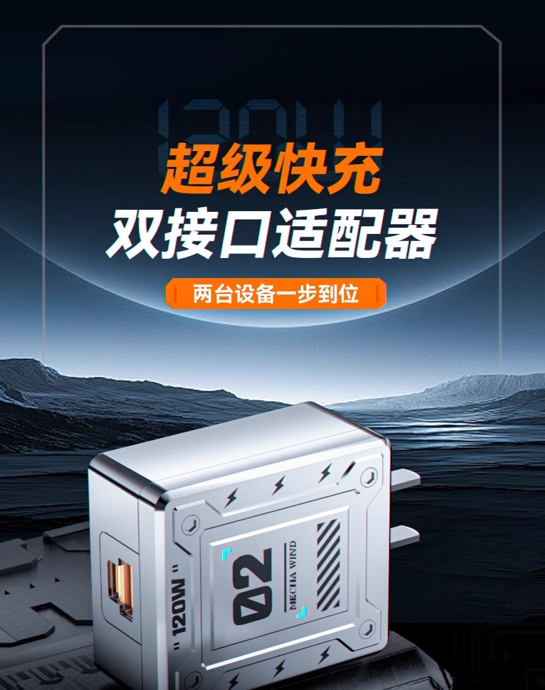 120W极焊机甲超级快充头二拖二数据线套装适用苹果华为双口充电器