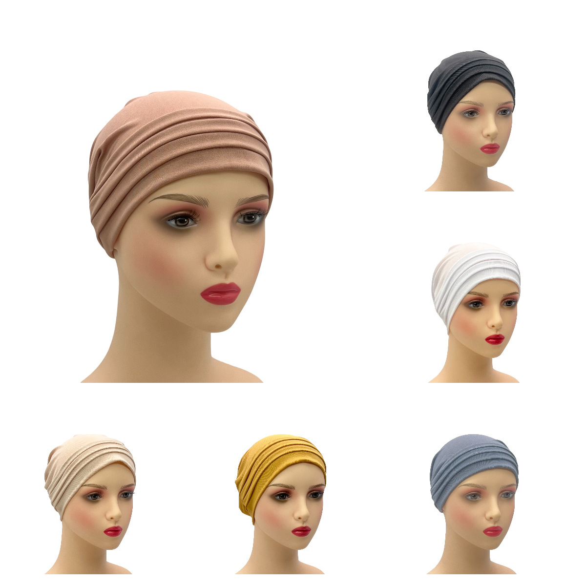 クロスヘッドスカーフ一体型帽子、エスニック帽子、包頭巾、レディース単色ヘッドスカーフ、工場直販、人気商品、多用途