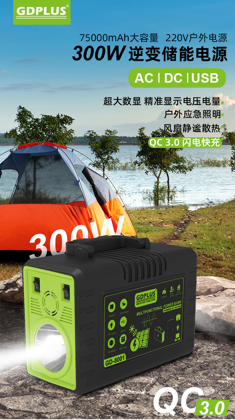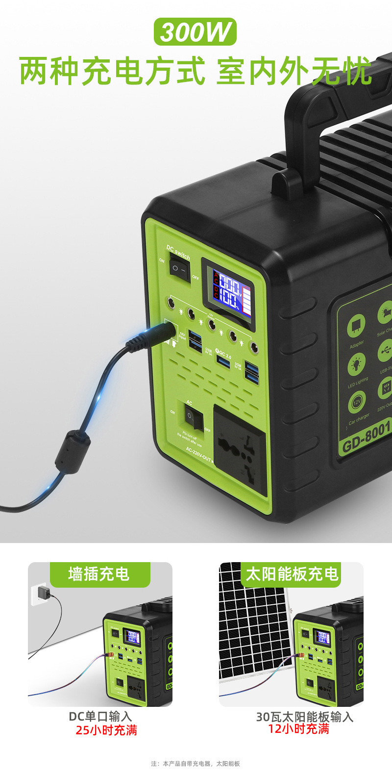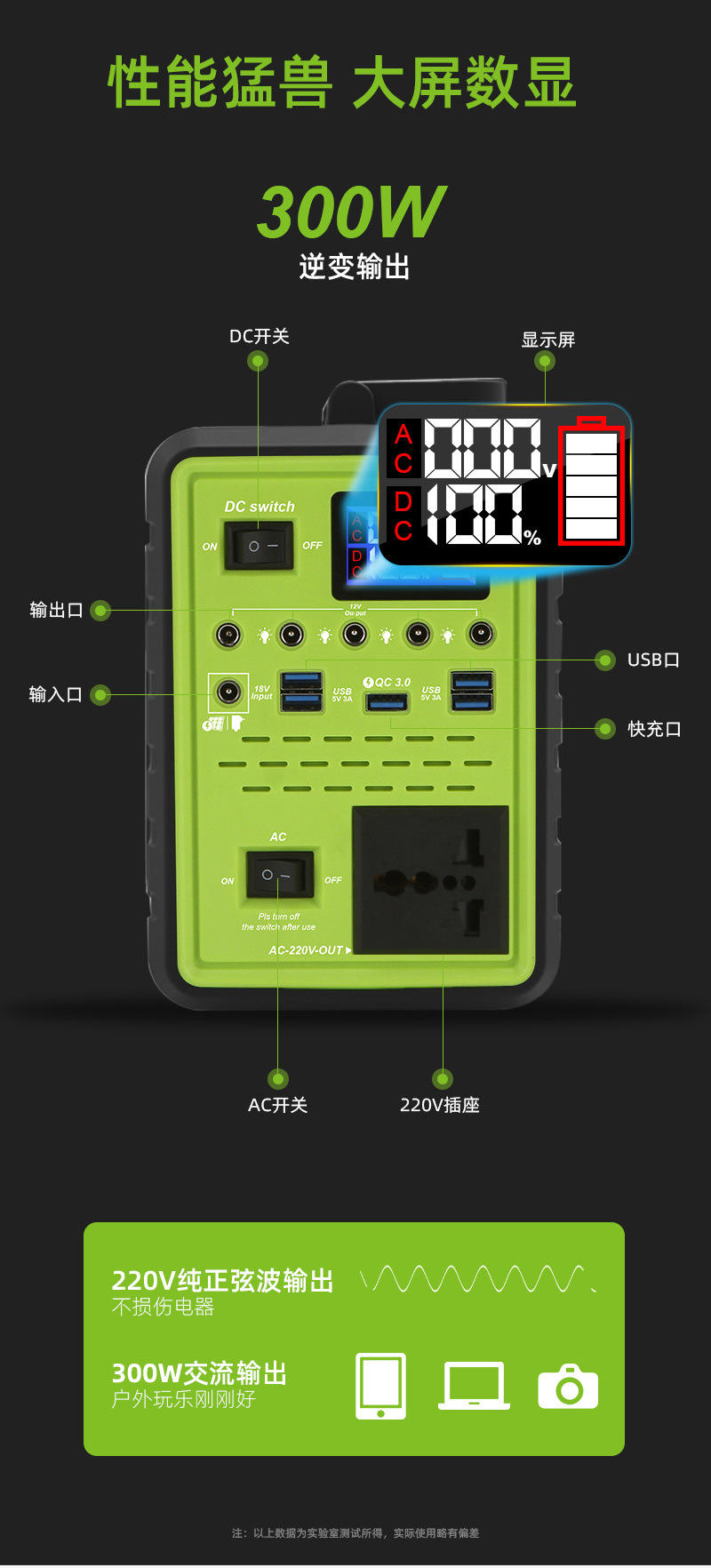 太陽エネルギー貯蔵インバータ電源屋外緊急折り畳み太陽エネルギー板ハイパワー純正弦波出力300W