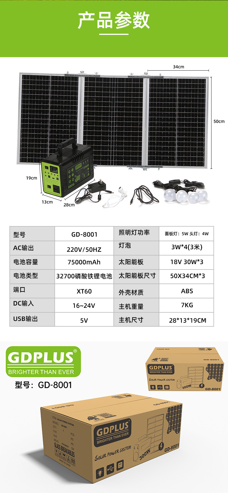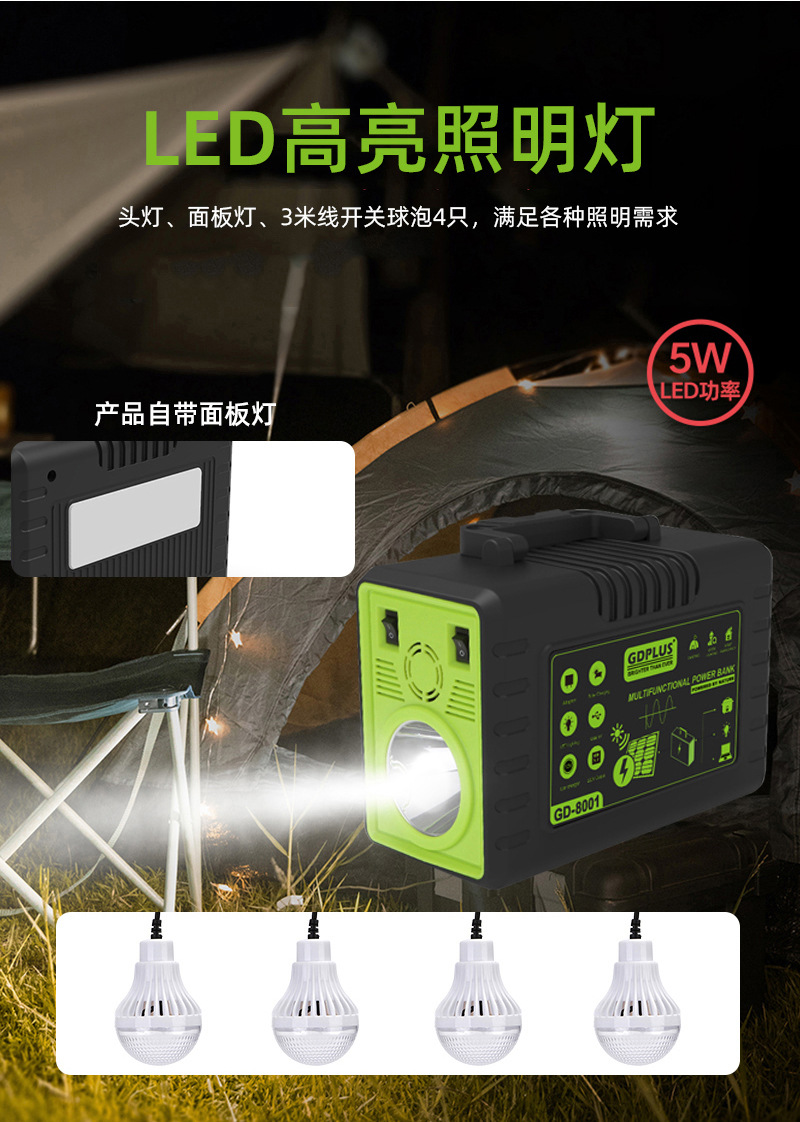 新型クロスボーダーアウトドア陽能板充電多機能便利アウトドアキャンプ太陽光発電システムランプ