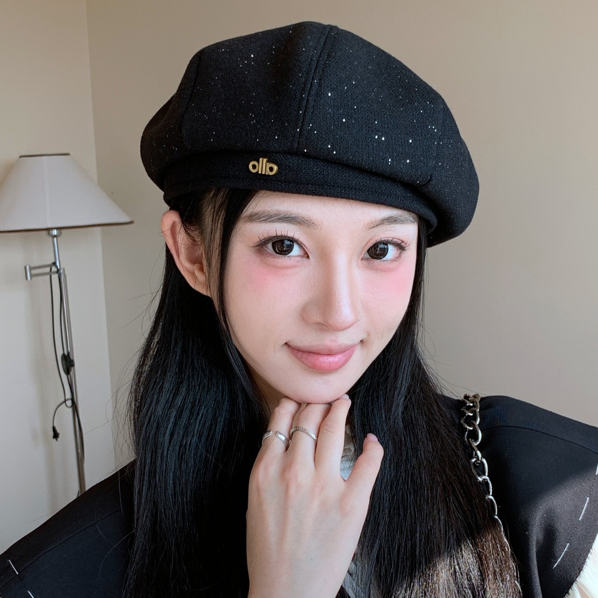 黑色贝雷帽女春秋款韩系大头围蓓蕾帽秋冬显脸小网红英伦八角帽子