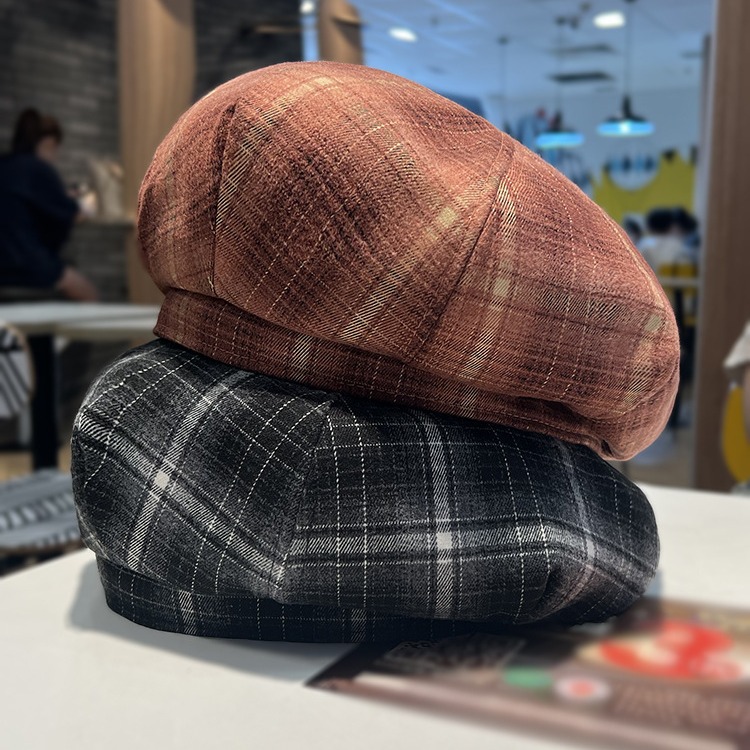 レトロな格子縞のベレー帽の女性の秋冬のカジュアルな百合のつぼみの八角の帽子の韓国版は買い物をして顔の小さいカボチャの帽子を現します。