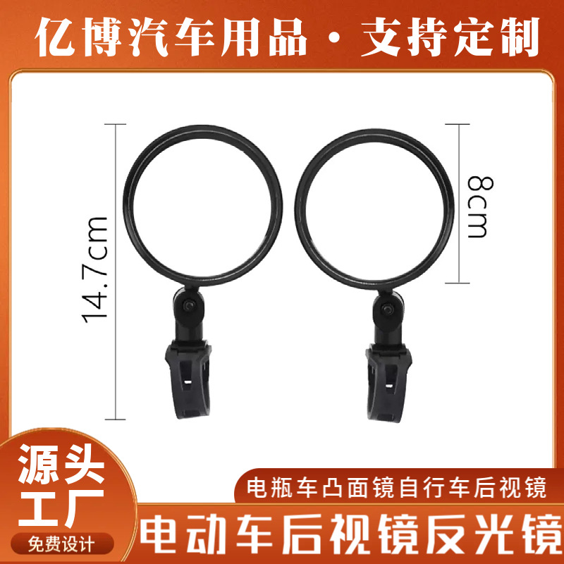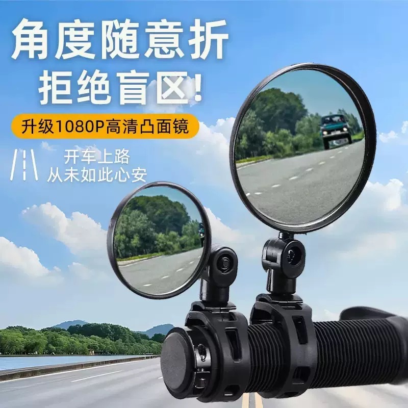 电动车后视镜自行车后视镜凸面镜单车反光镜山地车后视镜软胶卡扣