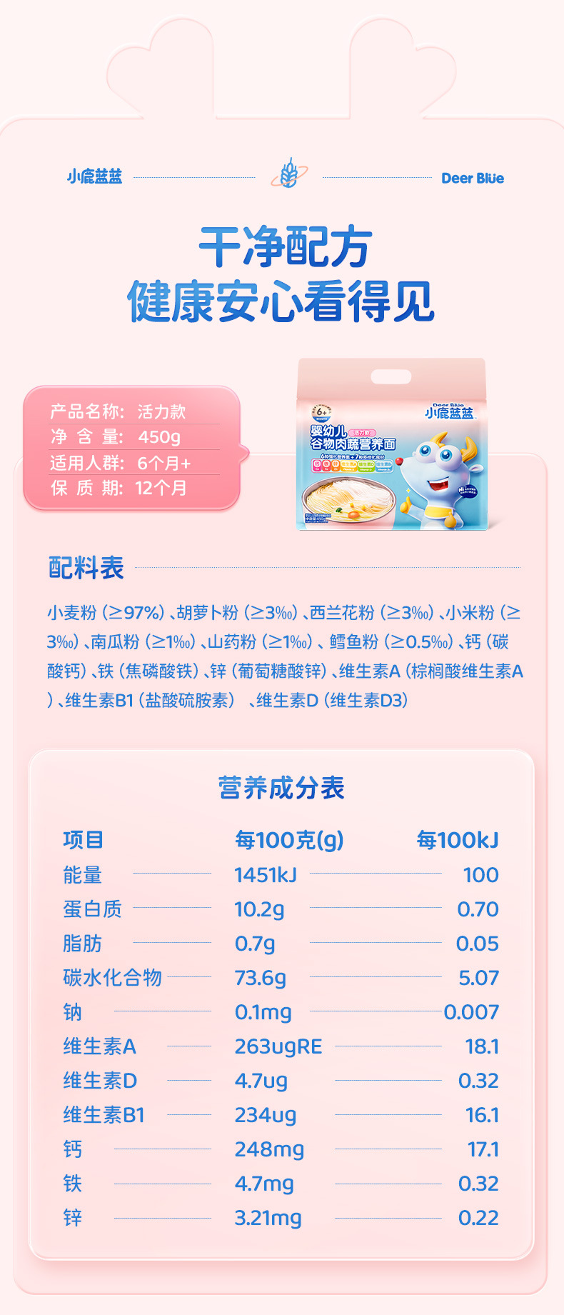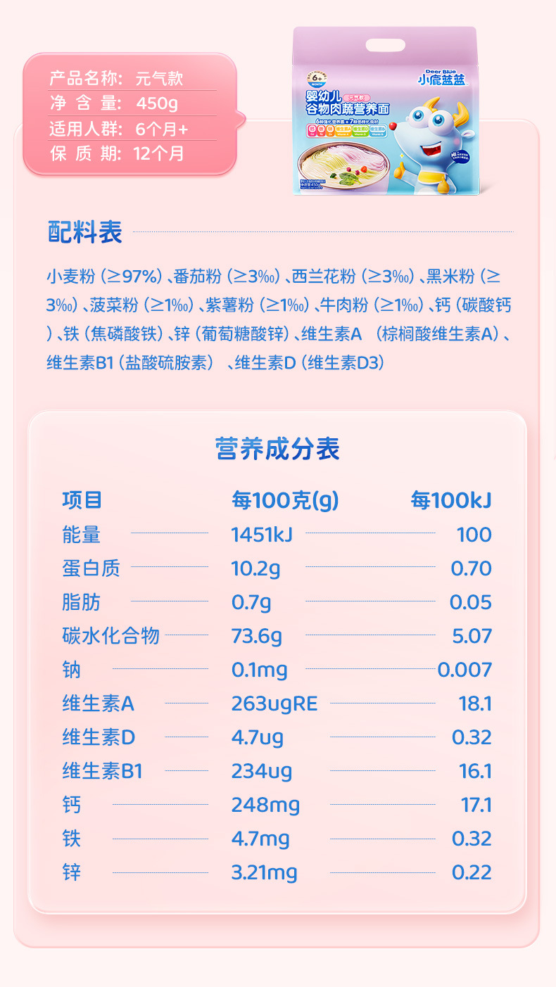 鹿青青乳幼児標麺カルシウム鉄亜鉛穀物肉野菜栄養面赤ちゃん補助食量販店450g