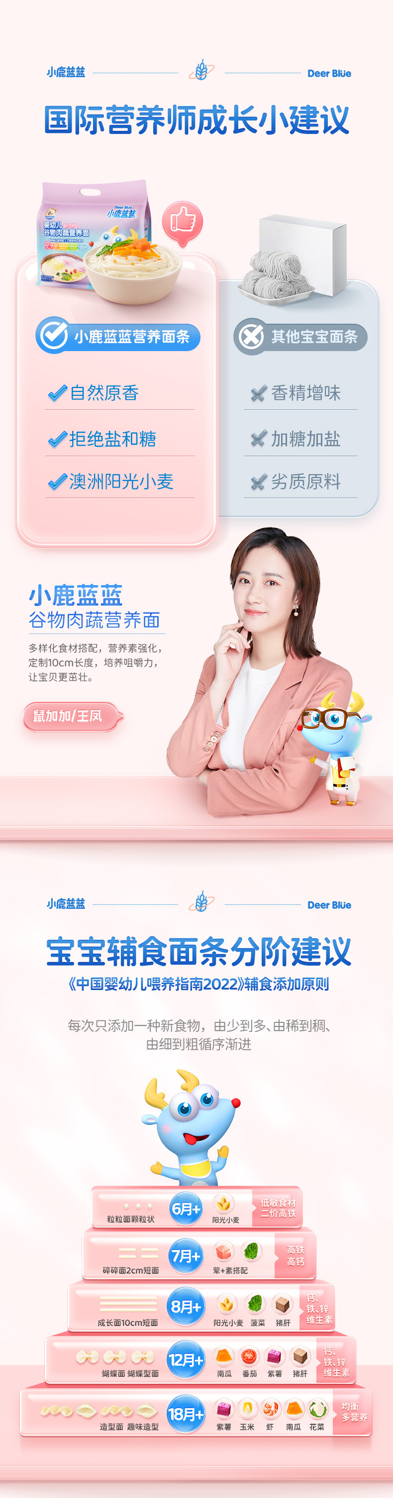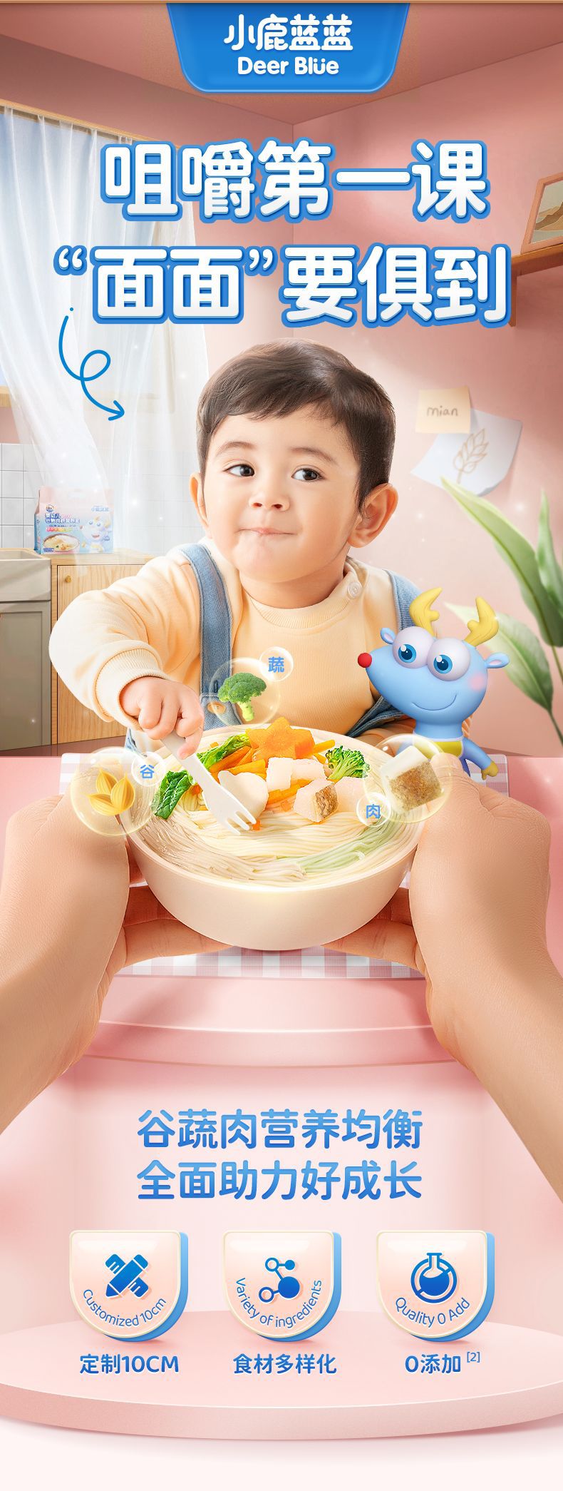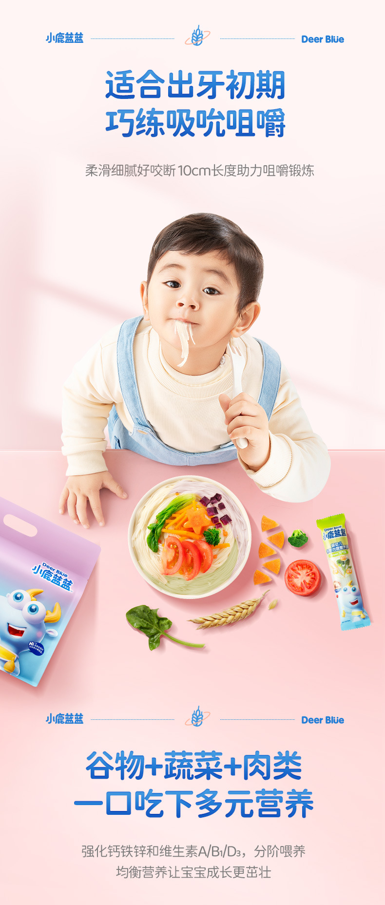 小鹿藍青乳幼児成長麺豚肝ホウレンソウ西藍花赤ちゃん子供果物野菜栄養面補助食