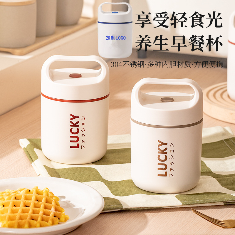 ギフト弁当箱粥カップ朝食カップサラリーマンランチボックス携帯スープカップ304ステンレスオート麦カップロゴ