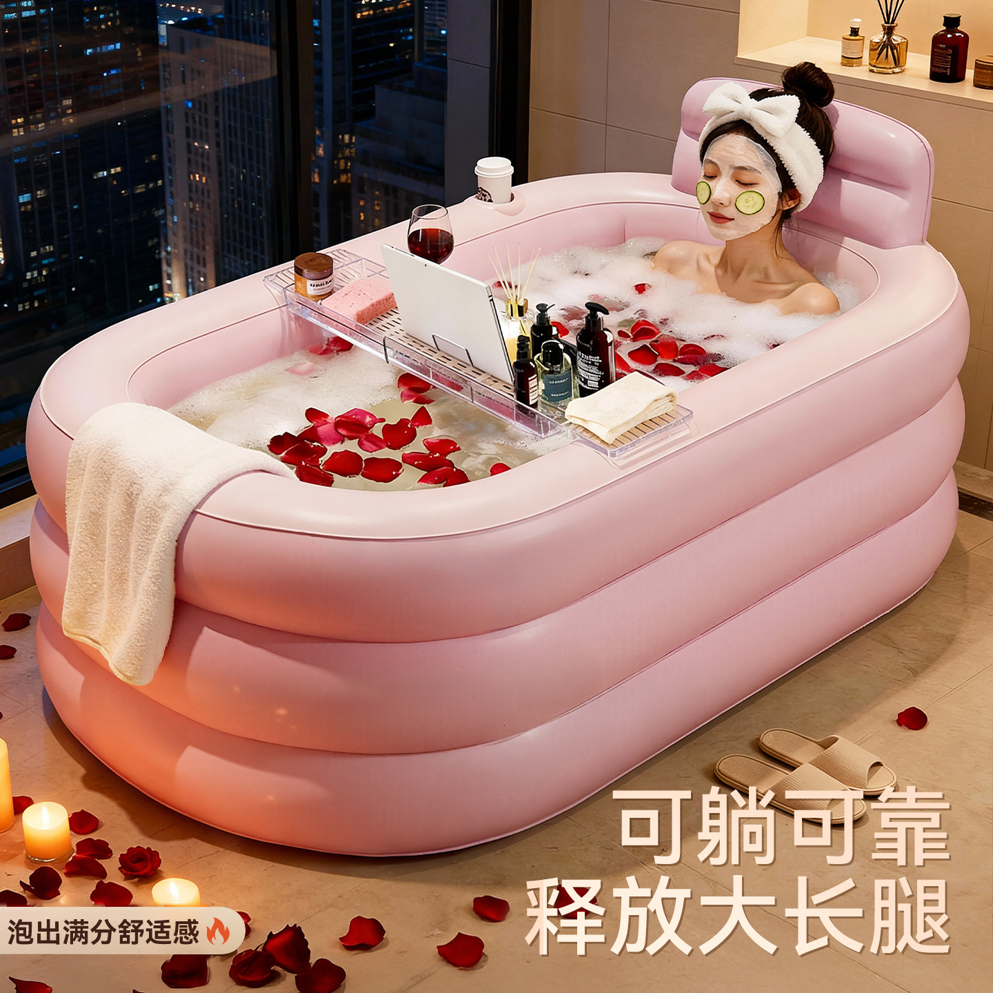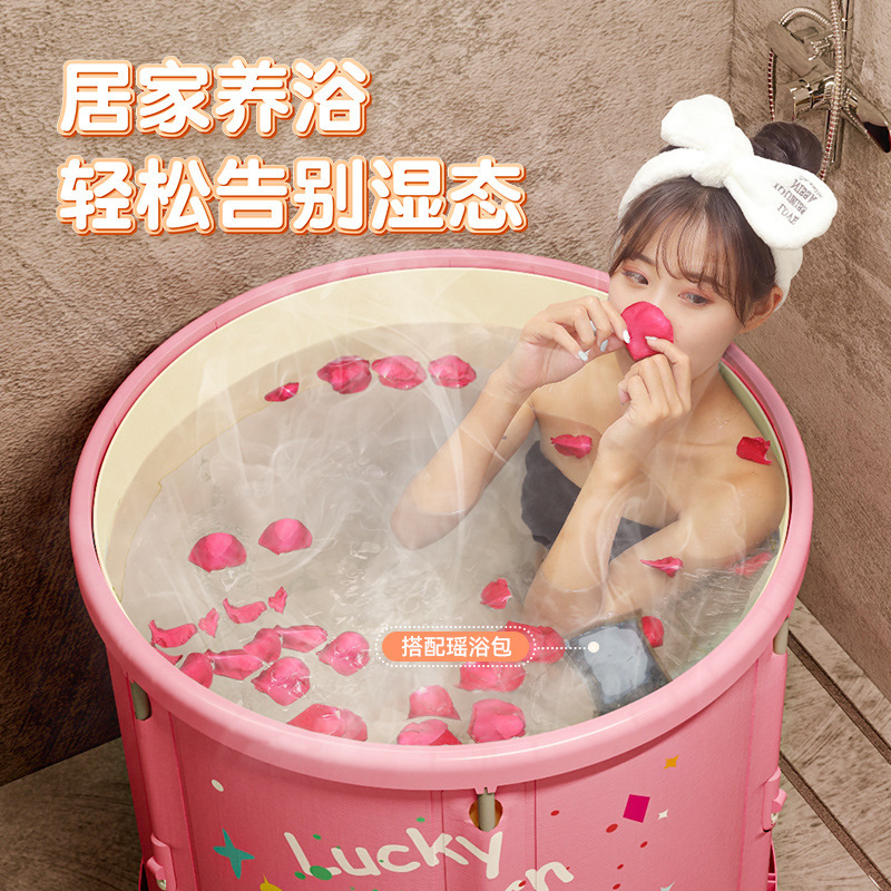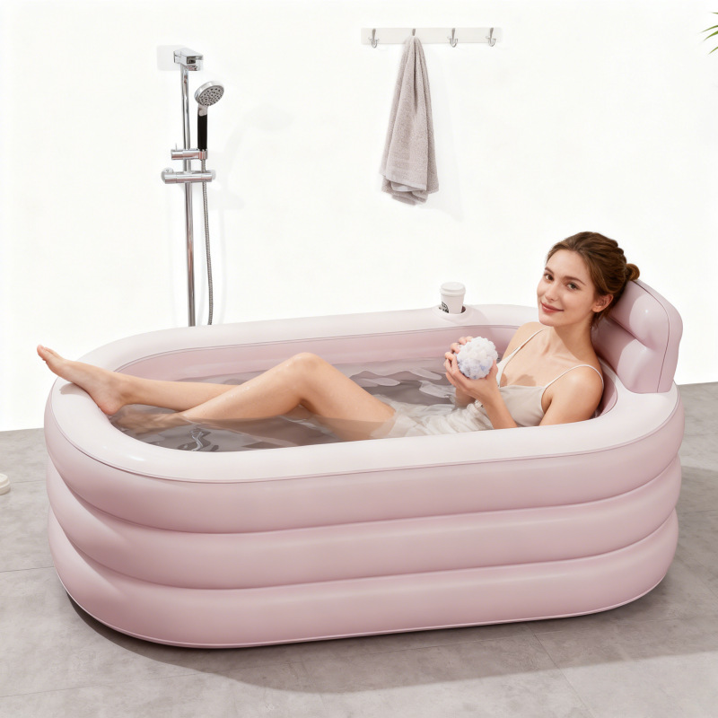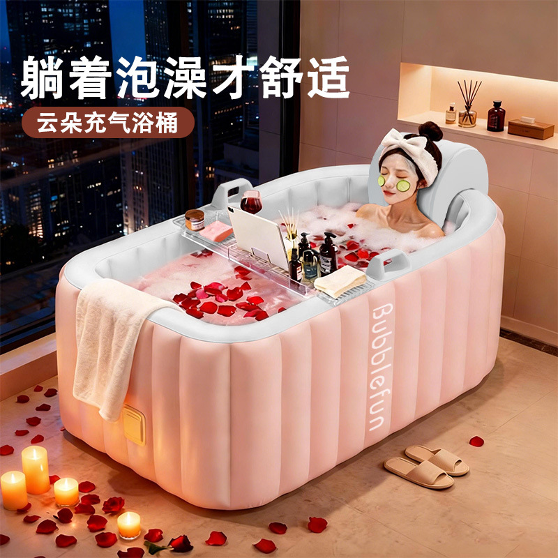 【厂家直供】家用成人充气浴缸可折叠保温泡澡桶少女粉浴室洗澡桶