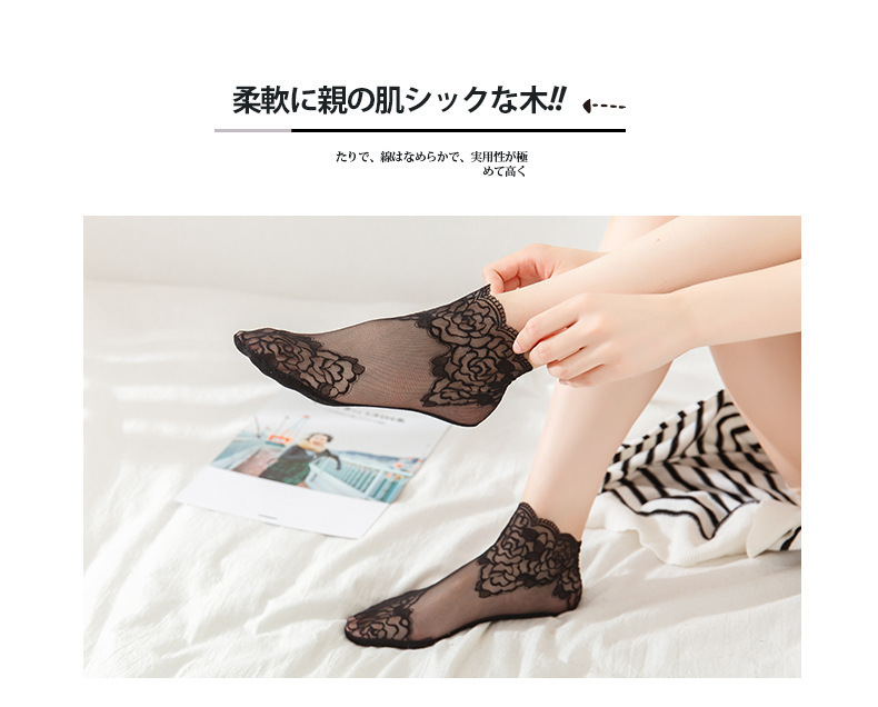 ベルベットフリルショートストッキング女性の夏薄いルーズソックス甘いレースの女性の靴下ミッドチューブ靴下