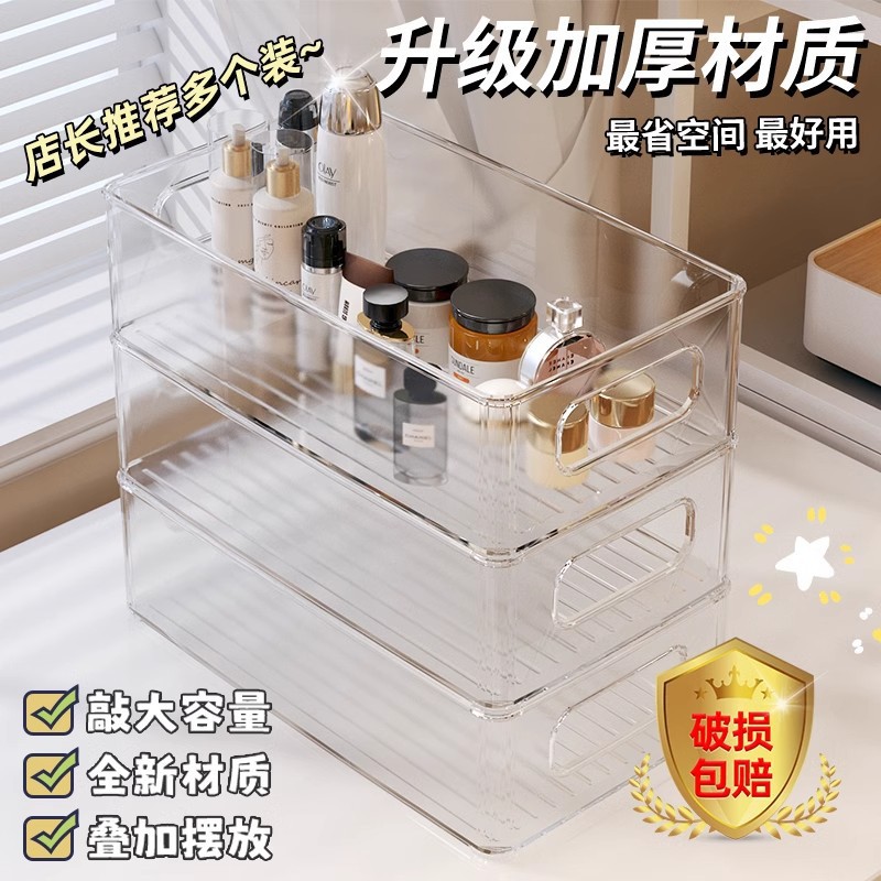 デスクトップ収納ボックス、アクリル化粧品スナック、透明バスケット、スキンケア製品、フェイシャルマスク、寮整理雑貨収納ラック