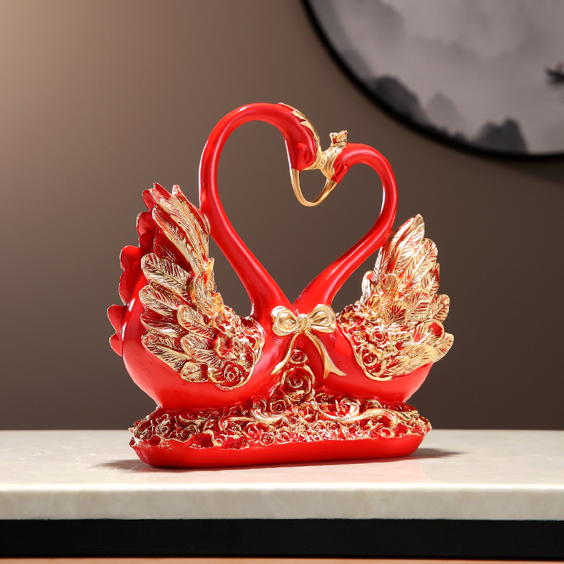 カップルの白鳥の家の客間の酒の棚の装飾品は中国式の軽い贅沢な創業の事務室の樹脂の工芸品を並べます。